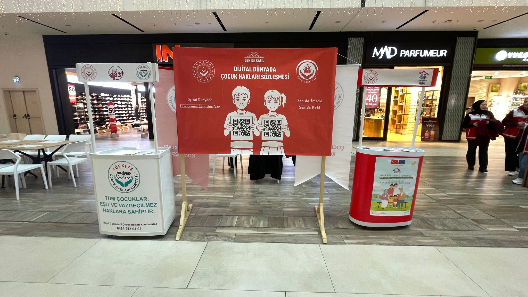 Çocuk Hakları ve Dijital Çocuk Hakları Sözleşmesi konusunda farkındalık oluşturmak ve ilimizde yürütülen koruyucu aile hizmetinin tanıtımını sağlamak amacıyla Çocuk Hizmetleri Birimimiz tarafından Şimal AVM'de bilgilendirme standı kuruldu.