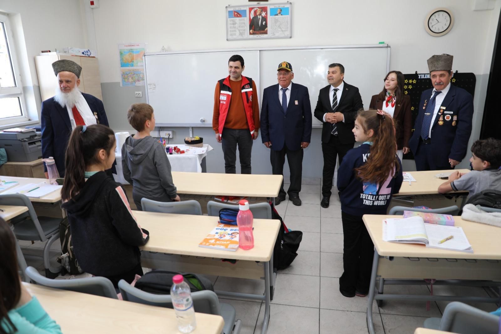 Samimi ve sıcak bir ortamda gerçekleşen buluşmada gazilerimiz, geçmişte yaşadıkları tecrübeleri ve vatan uğruna verdikleri mücadeleleri öğrencilerle paylaşarak, milli ve manevi değerlerimizin önemine dikkat çekti. Minik öğrencilerimiz ise büyük bir ilgi ve heyecanla dinledikleri bu anlamlı anlatımlar sayesinde unutulmaz bir deneyim yaşadı.