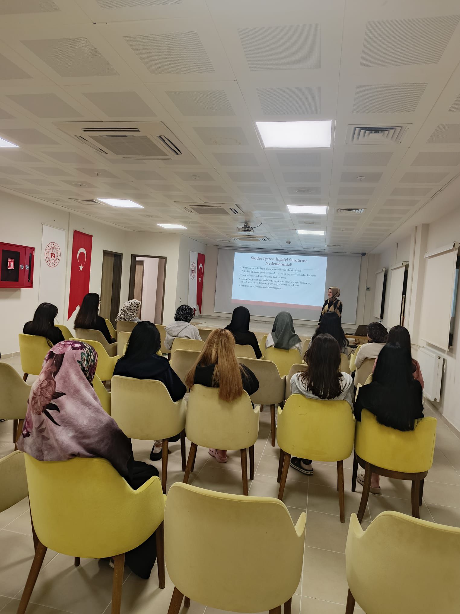 Program kapsamında, kadına yönelik şiddetin türleri, şiddetin birey ve toplum üzerindeki etkileri, erken farkındalık, başvuru mekanizmaları ve yasal haklar gibi önemli konularda kapsamlı bilgilendirmelerde bulunulmuştur. Alanında uzman personellerimiz tarafından verilen eğitimde, öğrencilerin bilinç düzeyinin artırılması, şiddetin önlenmesine yönelik farkındalığın güçlendirilmesi ve sağlıklı iletişim becerilerinin geliştirilmesi hedeflenmiştir.