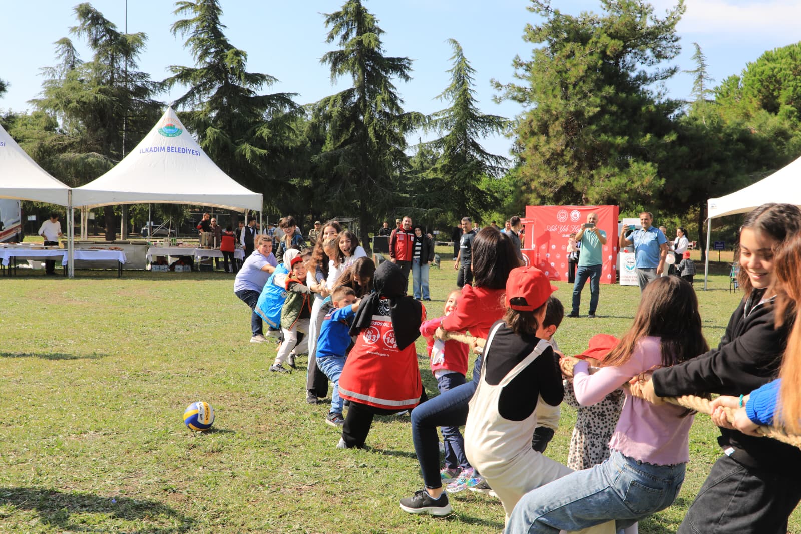 Gün boyunca devam eden etkinliklerde çocuklar ve aileler halat çekme ve voleybol gibi oyunlarla keyifli vakit geçirdi.