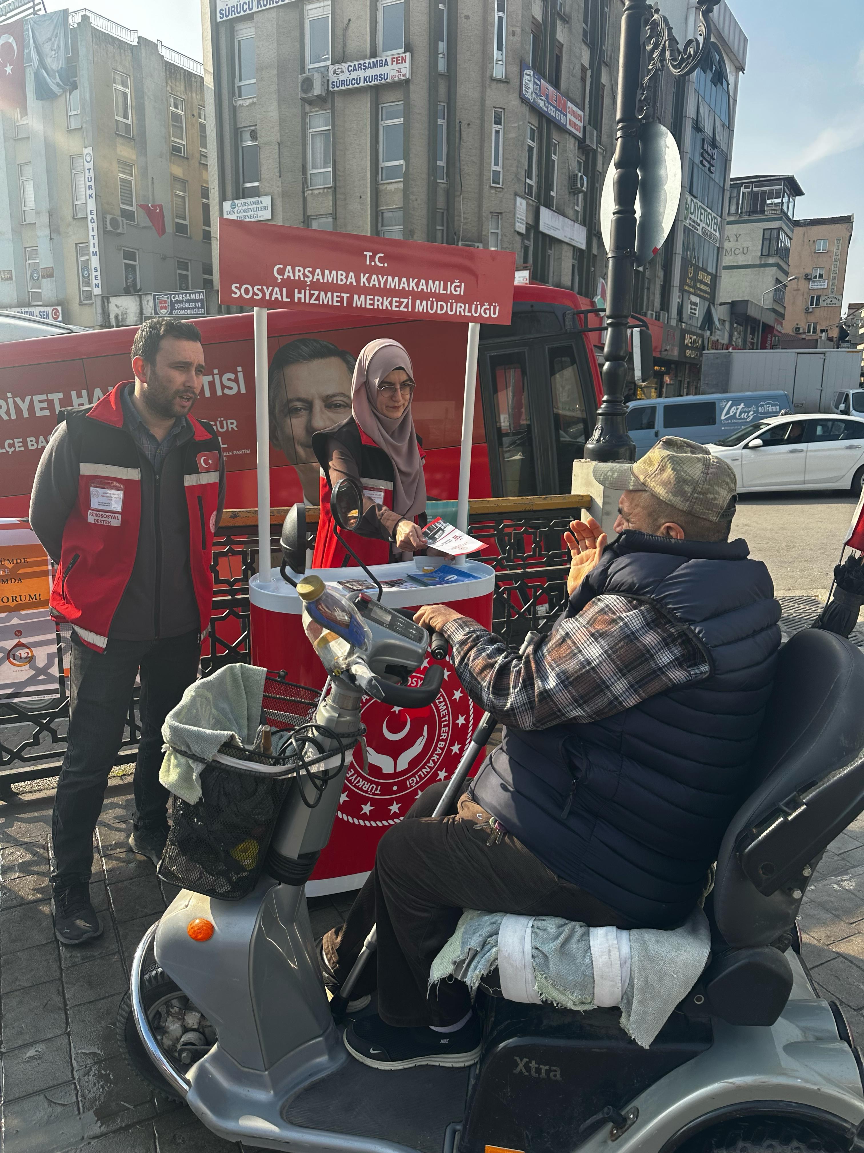 - Çarşamba Sosyal Hizmet Merkezi, başta tarihi köprü olmak üzere ilçenin çeşitli noktalarında broşür dağıtımı yaparak bilgilendirme gerçekleştirdi.