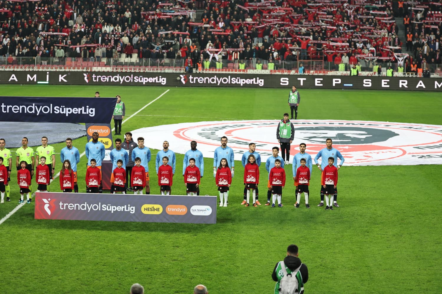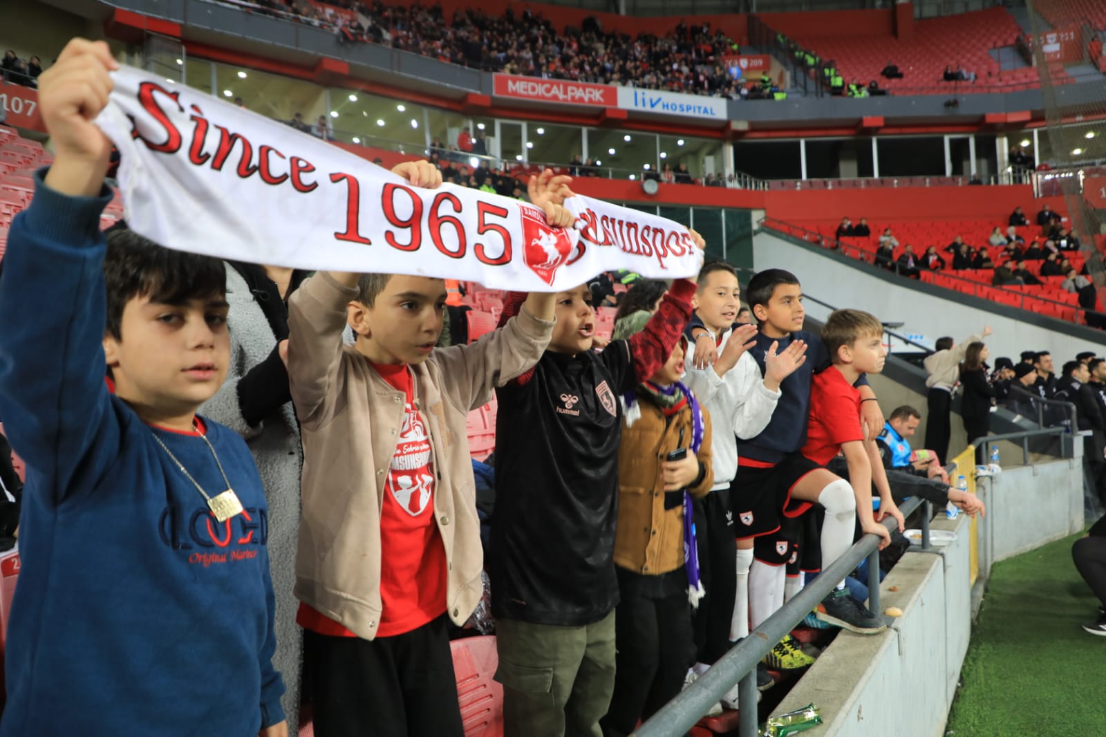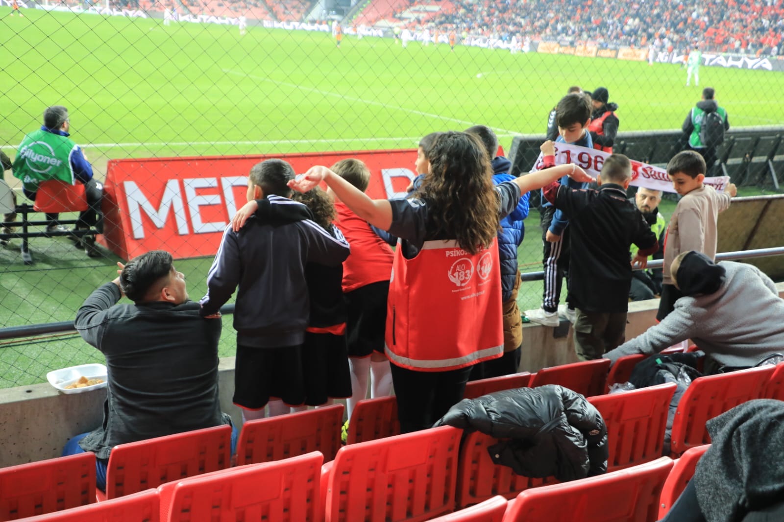 Çocuklar, “Çocuklar İçin Dost Uygulamalar ile Çocukların Dijital Dünyası Güvende” yazılı pankart taşıyarak dijital dünyada çocuk güvenliğinin önemine dikkat çekti. Tribünlerde yer alan aileleriyle birlikte maç heyecanını yaşayan çocuklar, coşkulu atmosferin keyfini çıkardı.