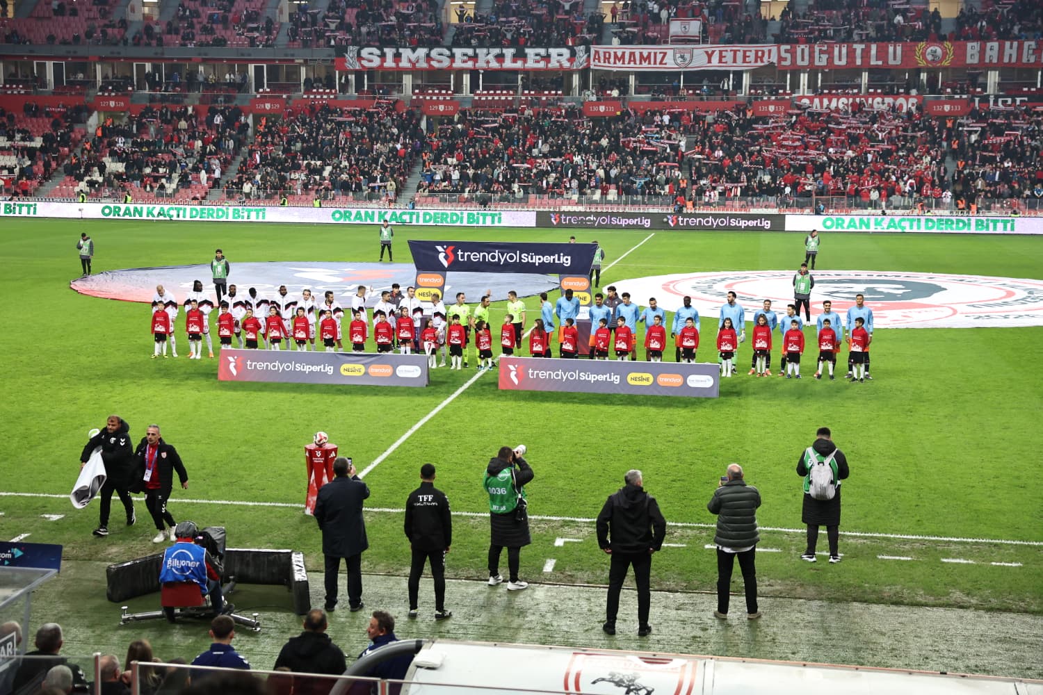 İl Çocuk Hakları Komitesi üyesi ve Okul Destek Projesi kapsamında yer alan çocuklar, Samsunspor–Başakşehir karşılaşması öncesinde futbolcularla birlikte seremoniye çıkarak unutulmaz bir an yaşadı.