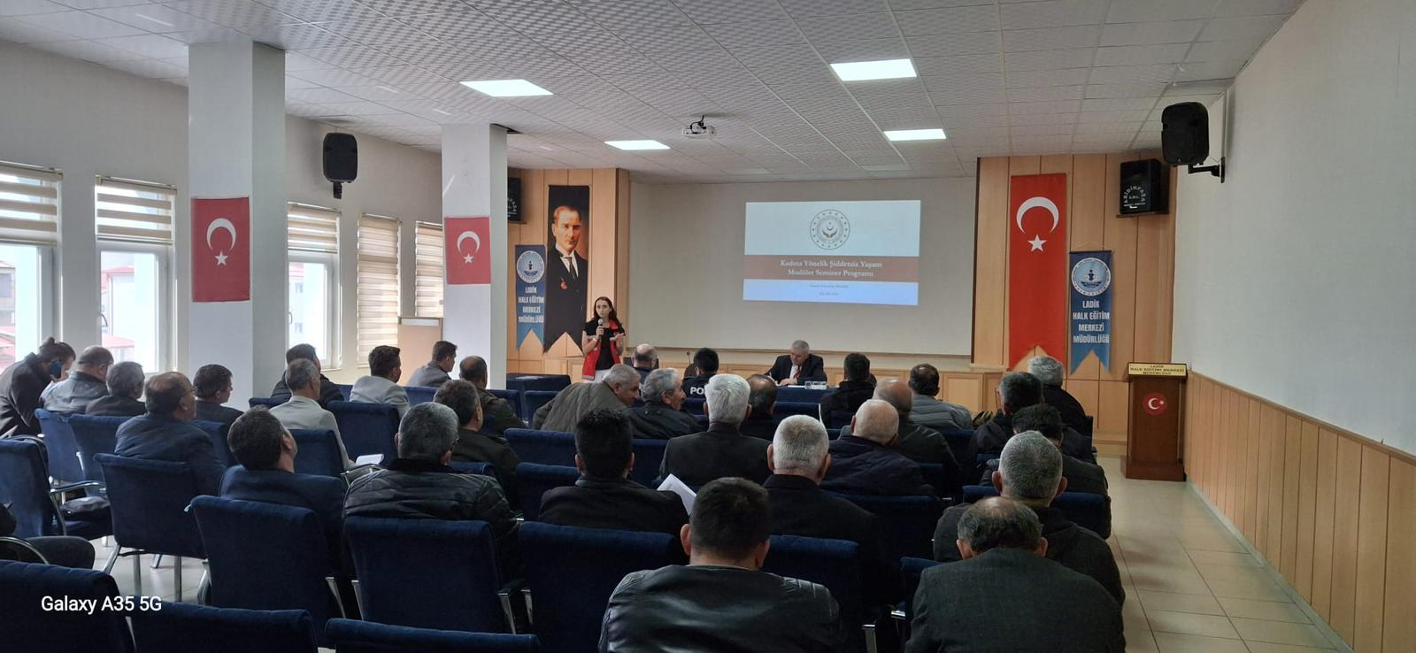 Havza Sosyal Hizmet Merkezi tarafından, Ladik ilçesinde görev yapan muhtarlara yönelik “Kadına Yönelik Şiddetsiz Yaşam” konulu eğitim programı gerçekleştirildi. Toplumun temel yapı taşlarından biri olan muhtarların sürece aktif katılımını sağlamak amacıyla düzenlenen eğitim, yerelde farkındalık oluşturmayı hedefledi.