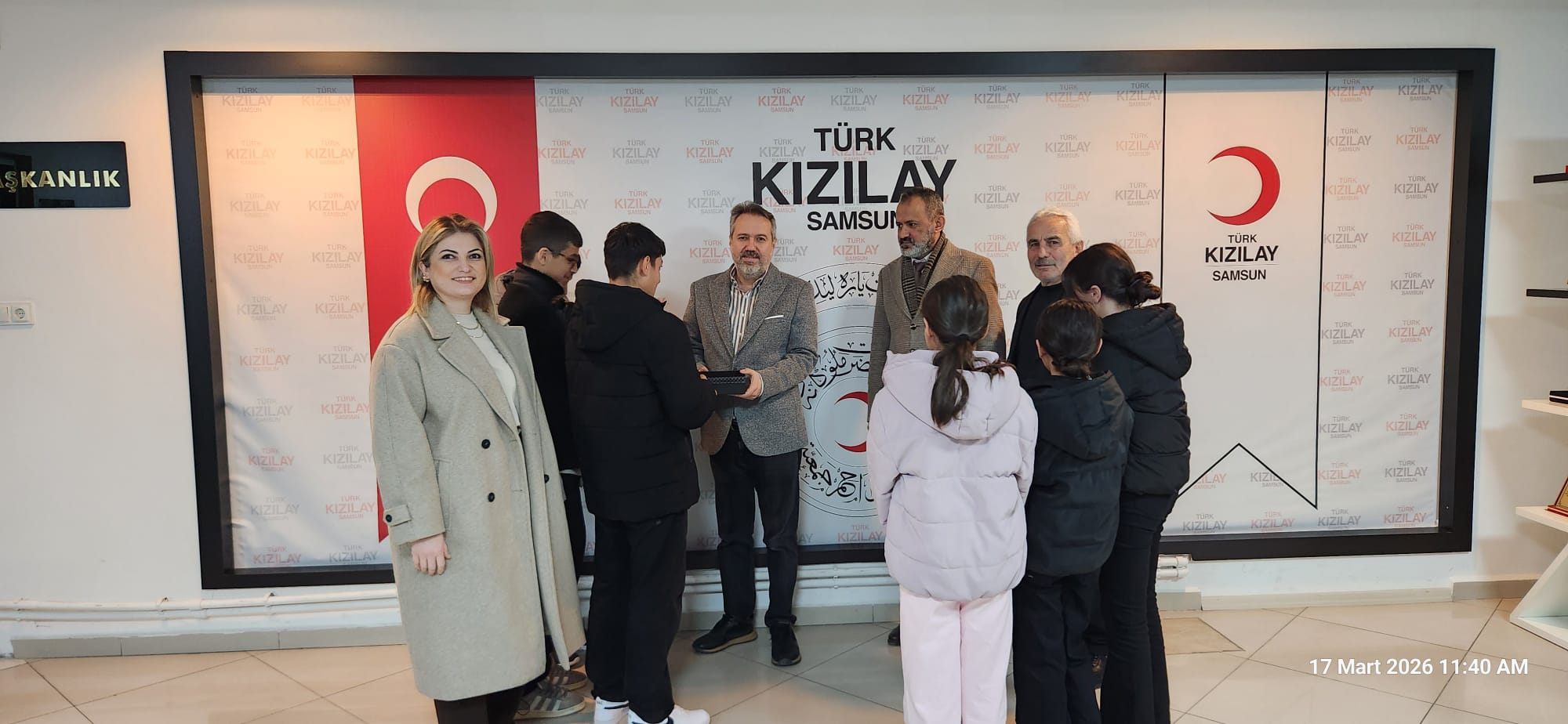 Samsun Aile ve Sosyal Hizmetler İl Müdürlüğü’ne bağlı 41 çocuk evinde koruma altında bulunan çocuklar, biriktirdikleri fitrelerini Gazze’deki ihtiyaç sahiplerine ulaştırılmak üzere Türk Kızılayı Samsun nŞube Başkanı Onur Çoban, Yönetim Kurulu Üyesi Mustafa Öztürk ve Şube Müdürü Reha Oğuz Ertuğrul’a teslim etti. Çocuklar ayrıca, bölgede yürütülen insani yardım çalışmaları ve sağlanan destekler nedeniyle Kızılay yetkililerine teşekkür etti.