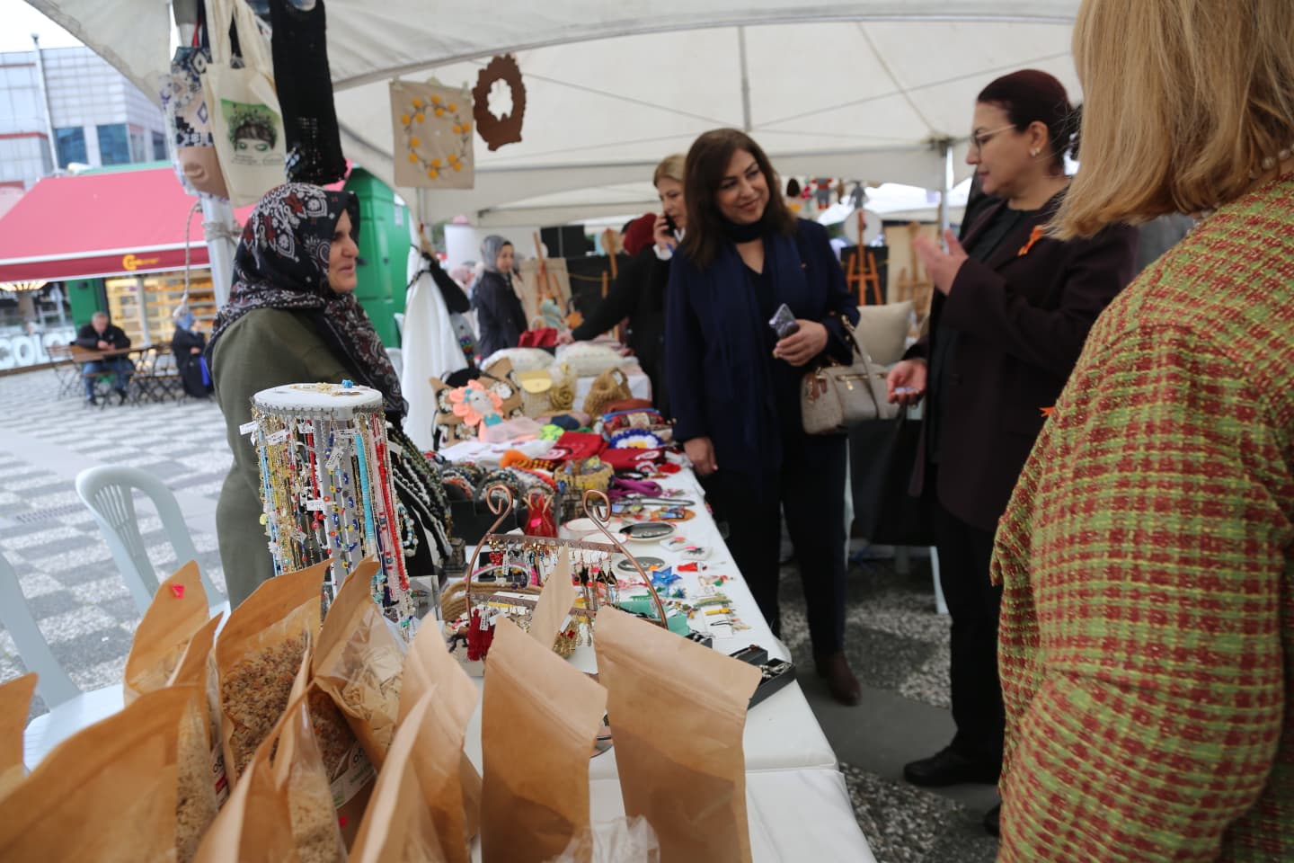 Bulvar Alışveriş Merkezi Meydanında gerçekleştirilen etkinlikte; kamu kurumları, sivil toplum kuruluşları, kadın kooperatifleri ve kursiyerler tarafından hazırlanan el emeği ürünler ziyaretçilerin beğenisine sunuldu.