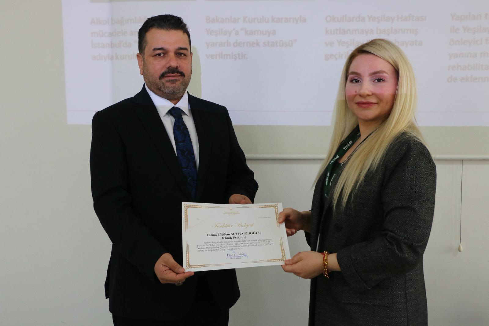 Yeşilay Şanlıurfa Şubesi tarafından,Aile ve Sosyal Hizmetler İl Müdürlüğümüz personelleri için ‘Madde Bağımlılığı Eğitimi’ düzenlendi.
