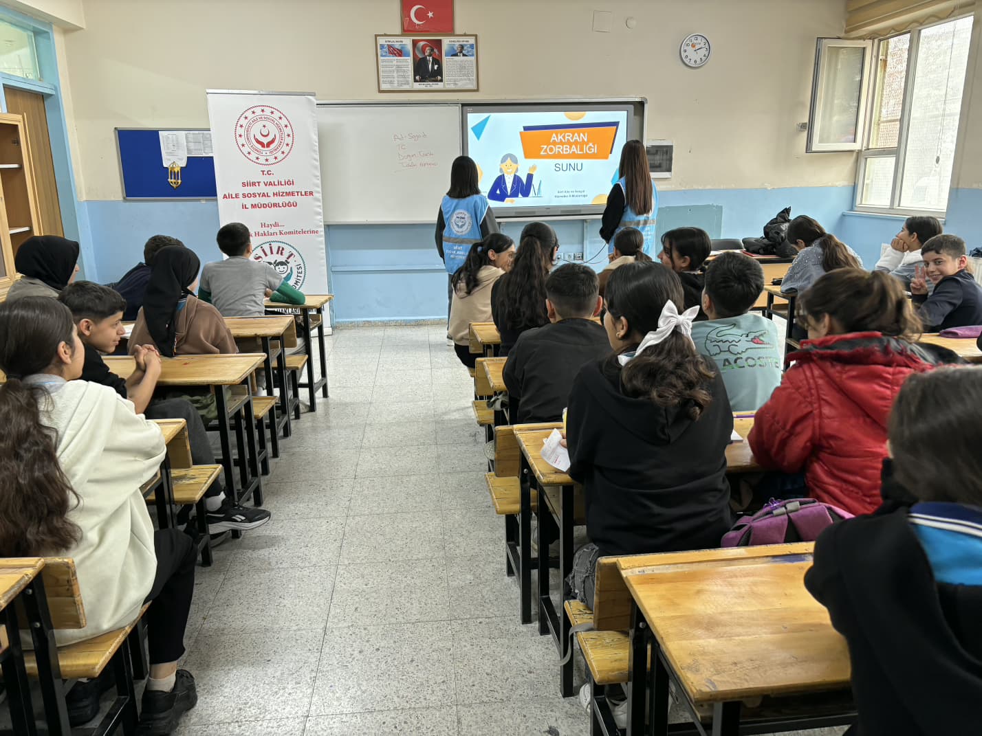 Siirt Çocuk Hakları Komitesi üyelerimiz ile birlikte, çocuk haklarının tanıtımı ve akran zorbalığına yönelik farkındalık çalışmaları kapsamında Siirt Hürriyet Ortaokulu öğrencilerine akrandan akrana eğitim verilmiştir.