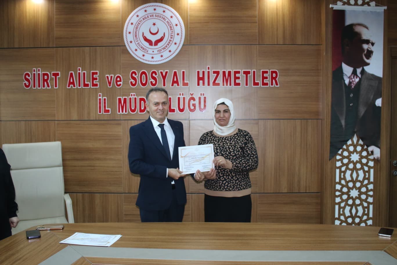 81 ilde eş zamanlı olarak başlatılan, kamu kurumları ve ailelere yönelik yürütülen Modüler Aile Eğitim Programı kapsamında; aile içi iletişimin güçlendirilmesi, sağlıklı aile ilişkilerinin desteklenmesi ve toplumsal farkındalığın artırılmasına yönelik düzenlenen eğitimlere katılan İŞKUR personellerine katılım belgeleri takdim edilmiştir.