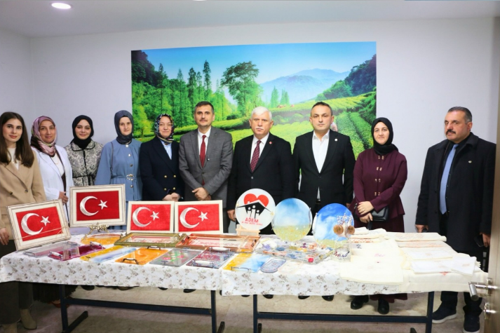 Of Kaymakamlığı Sosyal Yardımlaşma ve Dayanışma Vakfı bünyesinde faaliyet gösteren Aile Destek Merkezinde (ADEM) düzenlenen programda, filografi, giyim, amigurumi ve hasır işleme kurslarında eğitim alan 65 kursiyerin ürünleri sergilendi.