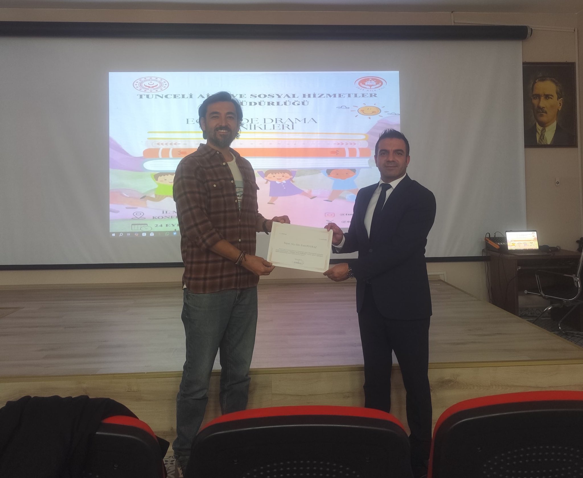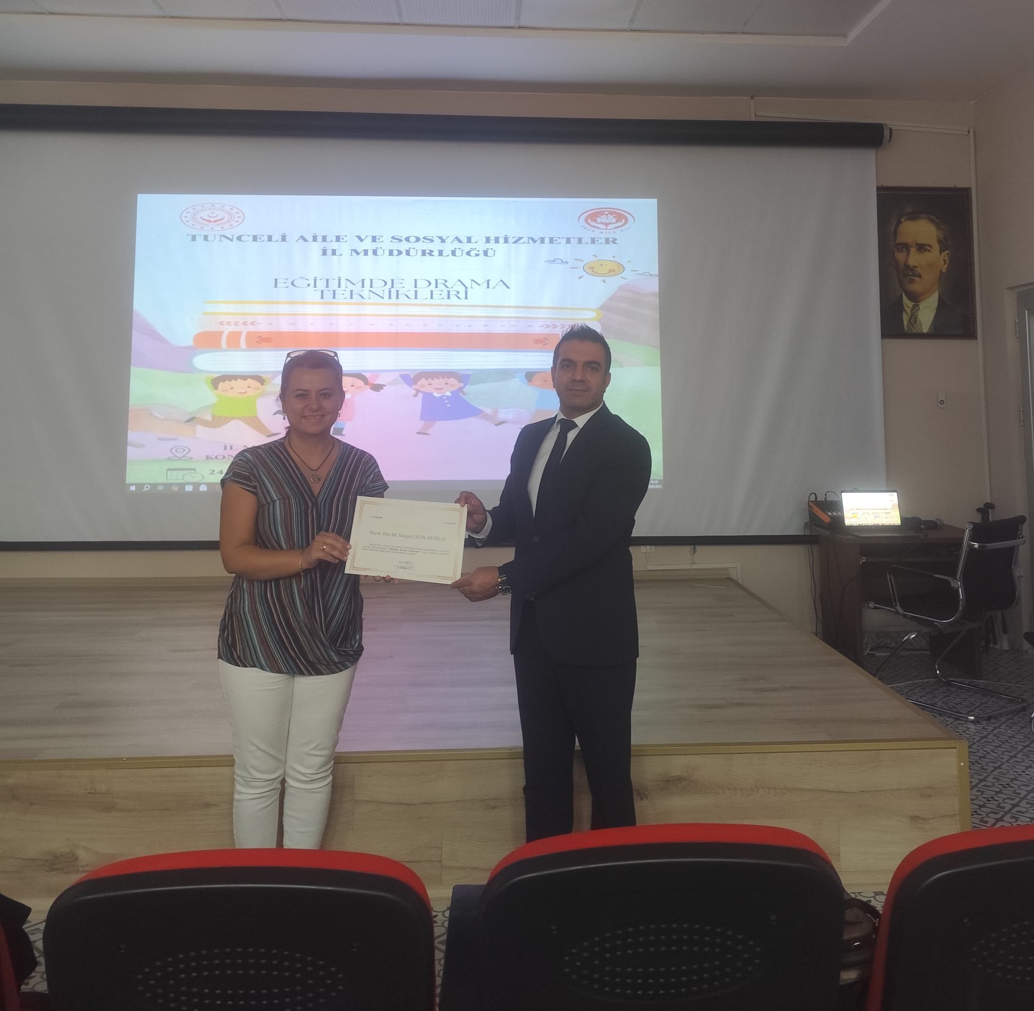 Munzur Üniversitesi'nde görev yapan Doç. Dr. Duygu ÇELİK BURKAY ve Arş. Gör. Esen POYRAZ tarafından Müdürlüğümüzde görev yapan Aile Eğitim Programı (AEP) eğiticilerine yerel eğitim programı kapsamında "Eğitimde Drama Kullanımı" eğitimi verilmiştir.