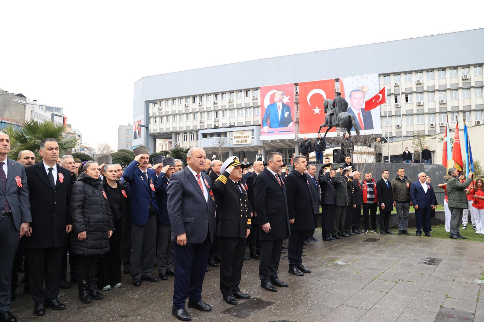 Program Valilik önünde bulunan Şehitler Anıtı’na çelenk sunma töreniyle başlamıştır. Düzenlenen törene Valimiz Sn. Osman HACIBEKTAŞOĞLU, il protokol üyeleri, İl Müdürümüz Sn. Mehmet Türkmen KÖSE, Zonguldak Şehit Aileleri Sosyal Yardımlaşma ve Dayanışma Derneği Başkanı Sn. Mustafa YORULMAZ, Zonguldak Muharip Gaziler Derneği Başkanı Sn. Necmettin ÇANTAŞ, aziz şehitlerimizin değerli yakınları ve kahraman gazilerimiz ile birlikte daire amirleri katılım sağlamıştır.