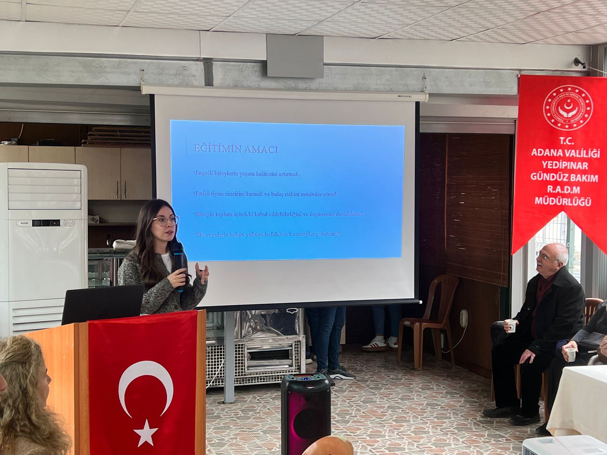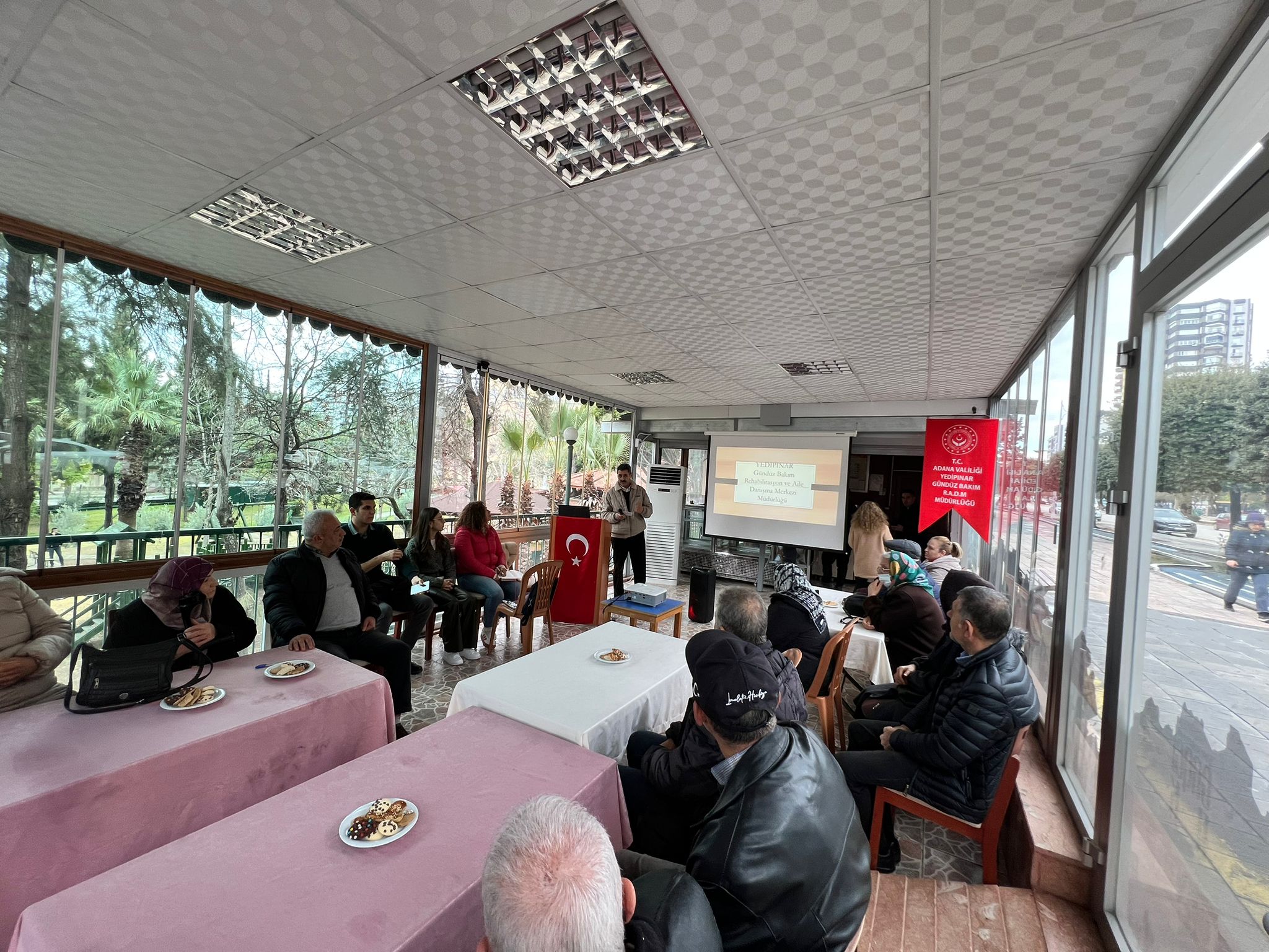 Adana Aile ve Sosyal Hizmetler İl Müdürlüğümüze bağlı Yedipınar Gündüz Bakım Rehabilitasyon ve Aile Danışma Merkezi olarak kurumumuzdan hizmet alan engelli bireylerimizin aileleri ile gerçekleştirdiğimiz toplantıda; ailelerimiz kurumumuzun vermekte olduğu hizmetler ve kurumumuzun işleyişi hakkında bilgilendirilmiş, ailelerimiz ile engelli bireylerimizin gelişimine anlamlı katkı sağlayacak hususlar üzerine istişare gerçekleştirilmiş ve ailelerimizin sorunları dinlenmiştir. Toplantı sonrasında Sarıçam Sosyal Hizmet Merkezinde görev almakta olan Psikolog Buse ÜZÜMCÜ tarafından ailelerimize "Hijyen" konulu eğitim verilmiştir.