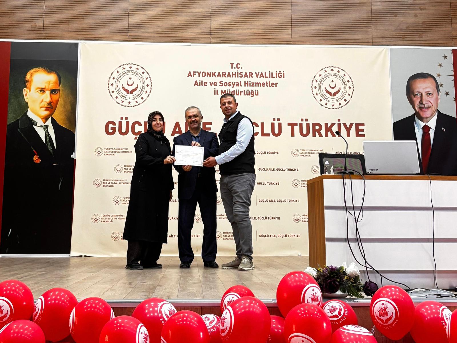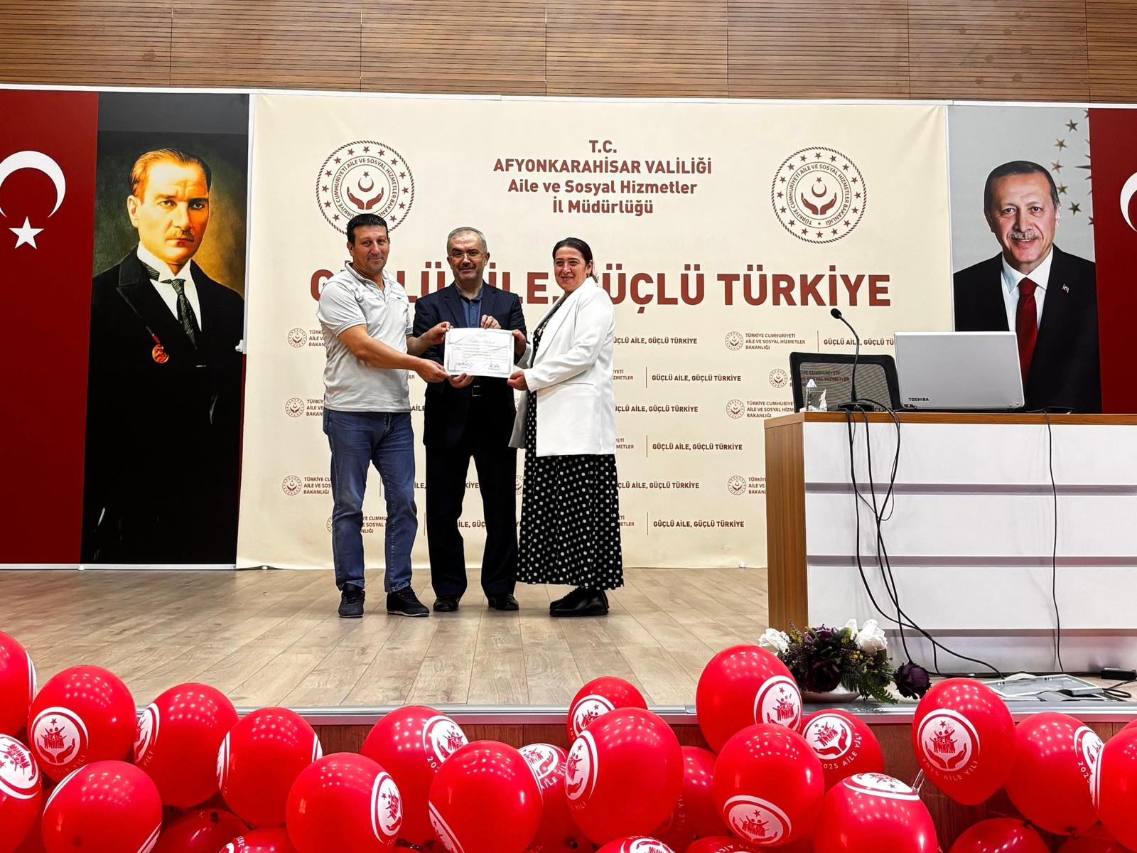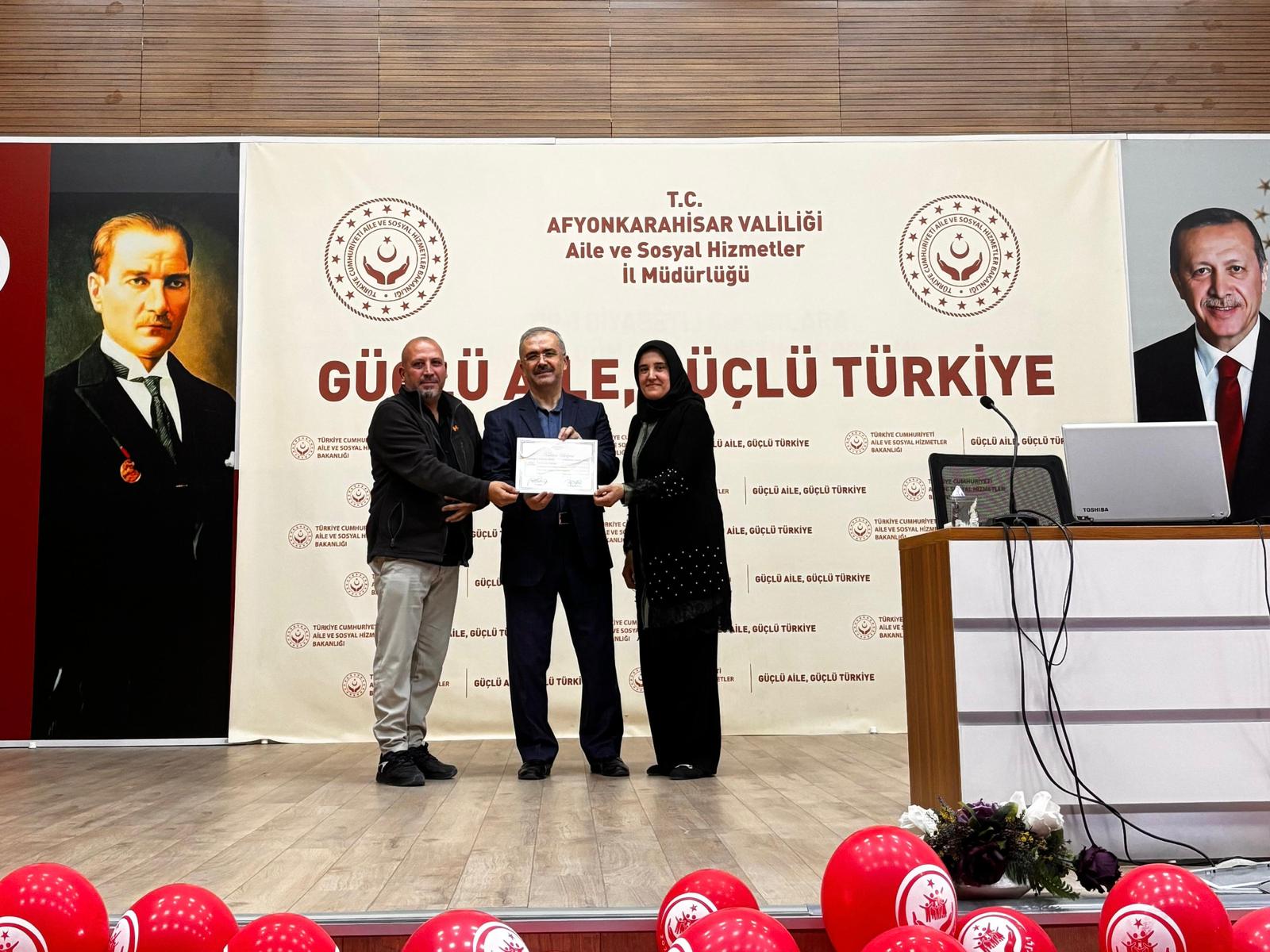 İl Müdürümüz Bilal Erdoğan, eğitime katılan koruyucu ailelerimize katılım belgelerini takdim ederek;