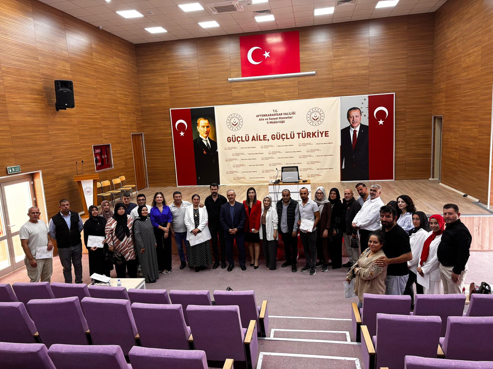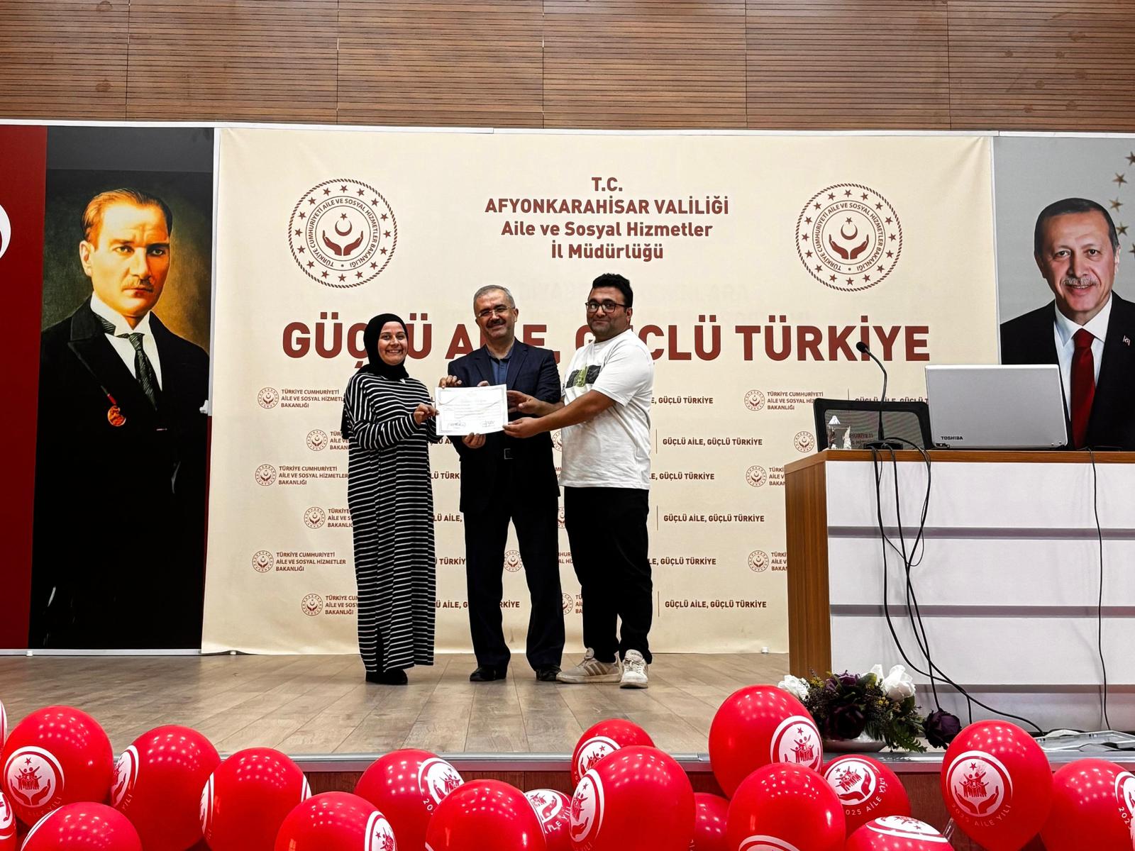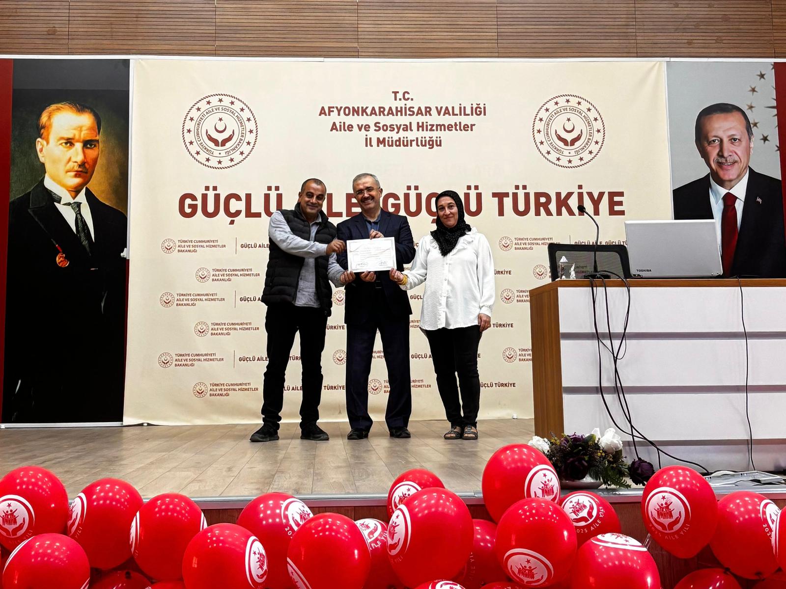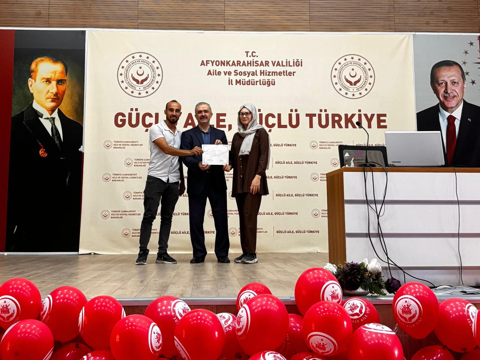 İl Müdürümüz Bilal Erdoğan, eğitime katılan koruyucu ailelerimize katılım belgelerini takdim ederek;