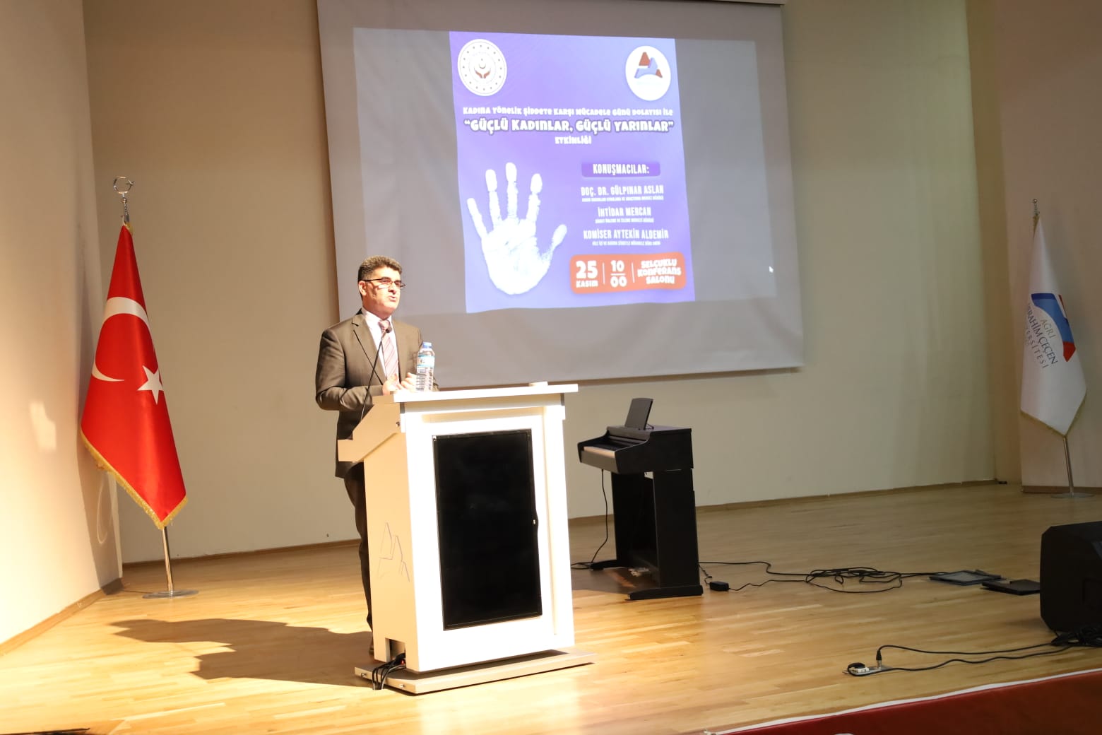 Ağrı İbrahim Çeçen Üniversitesi ve İl Müdürlüğümüz tarafından 25 Kasım Kadına Yönelik Şiddetle Mücadele Günü münasebetiyle düzenlenen 'Güçlü Kadınlar, Güçlü Yarınlar' konferansı gerçekleşti. #işaretiFarket