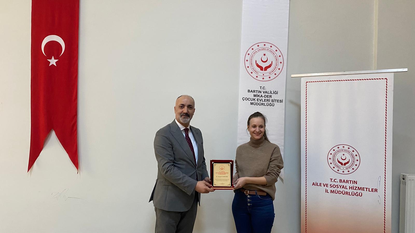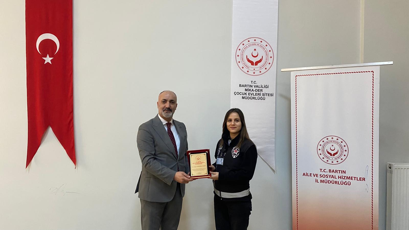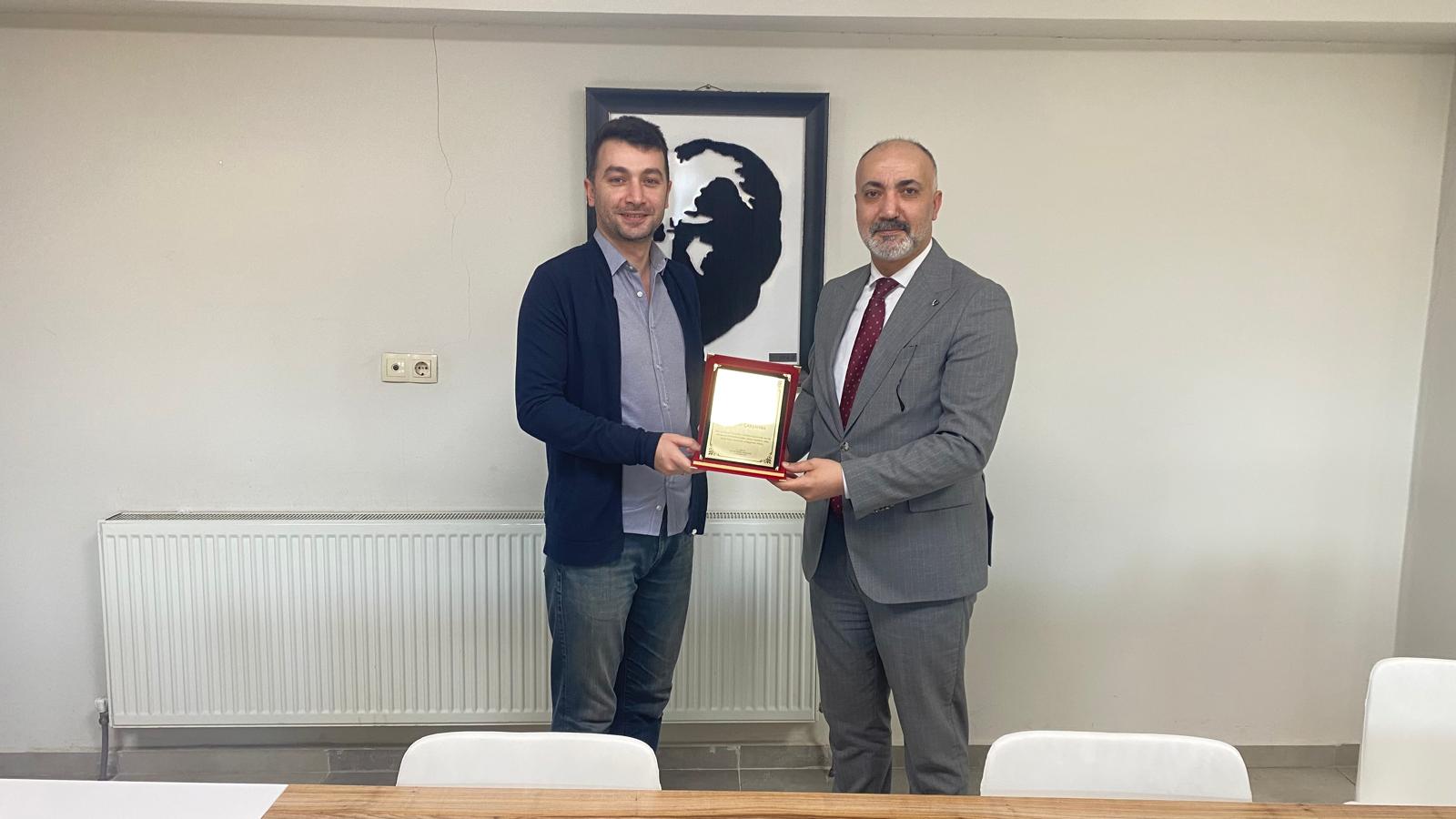 İl Müdürümüz Yavuz Korkmaz, Müdürlüğümüzde görev yapmakta iken görevde yükselme ve unvan değişikliği suretiyle başka illere ataması yapılan çalışma arkadaşlarımıza teşekkür belgelerini takdim etti.