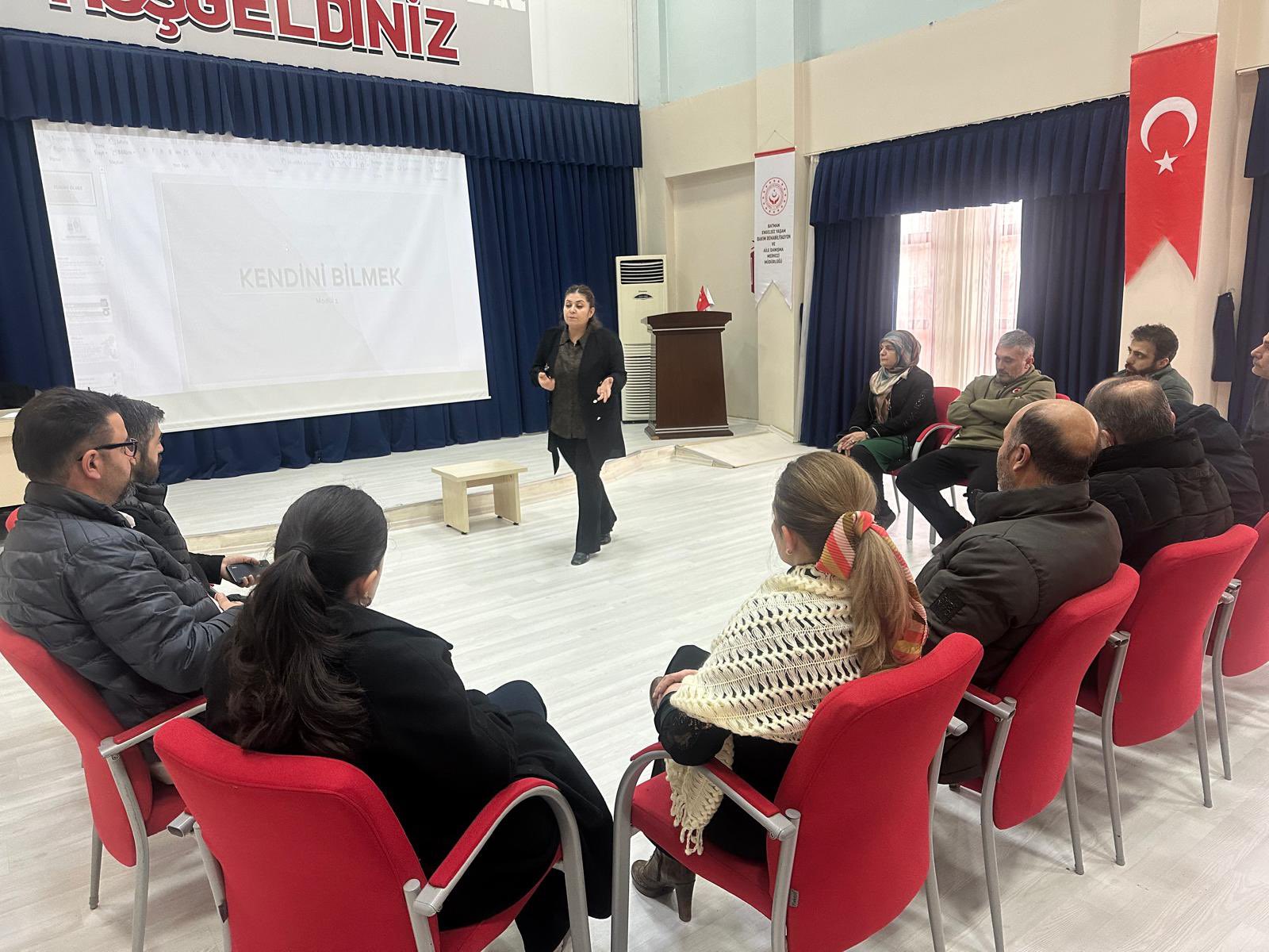 İl Müdürlüğümüze bağlı Batman Sosyal Hizmet Merkezi Müdürlüğü Eğitim ve Danışmanlık Birimi tarafından Batman Engelsiz Yaşam Bakım Rehabilitasyon ve Aile Danışma Merkezi Müdürlüğü personellerine Modüler Aile Eğitim Programı tanıtımı yapılarak “Kendini Bilmek” konulu eğitim verildi