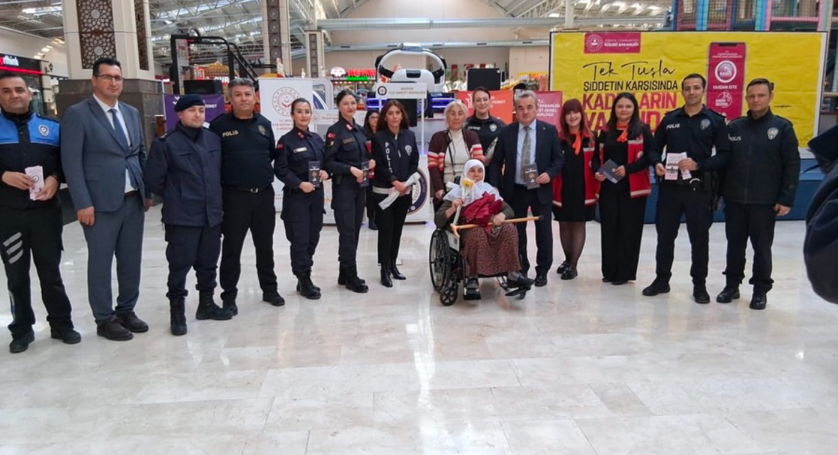 25 Kasım Kadına Yönelik Şiddete Karşı Uluslararası Mücadele Günü kapsamında Bozüyük Sarar AVM'de Müdürlüğümüz tarafından Bozüyük Kaymakamı Sayın Adem ÖZTÜRK'ün de katılımlarıyla vatandaşlarımıza Bakanlığımız Alo 183 İhbar Hattı, KADES uygulaması, 112 Acil Durum Hattı konularında bilgilendirme çalışmaları yapılmıştır.