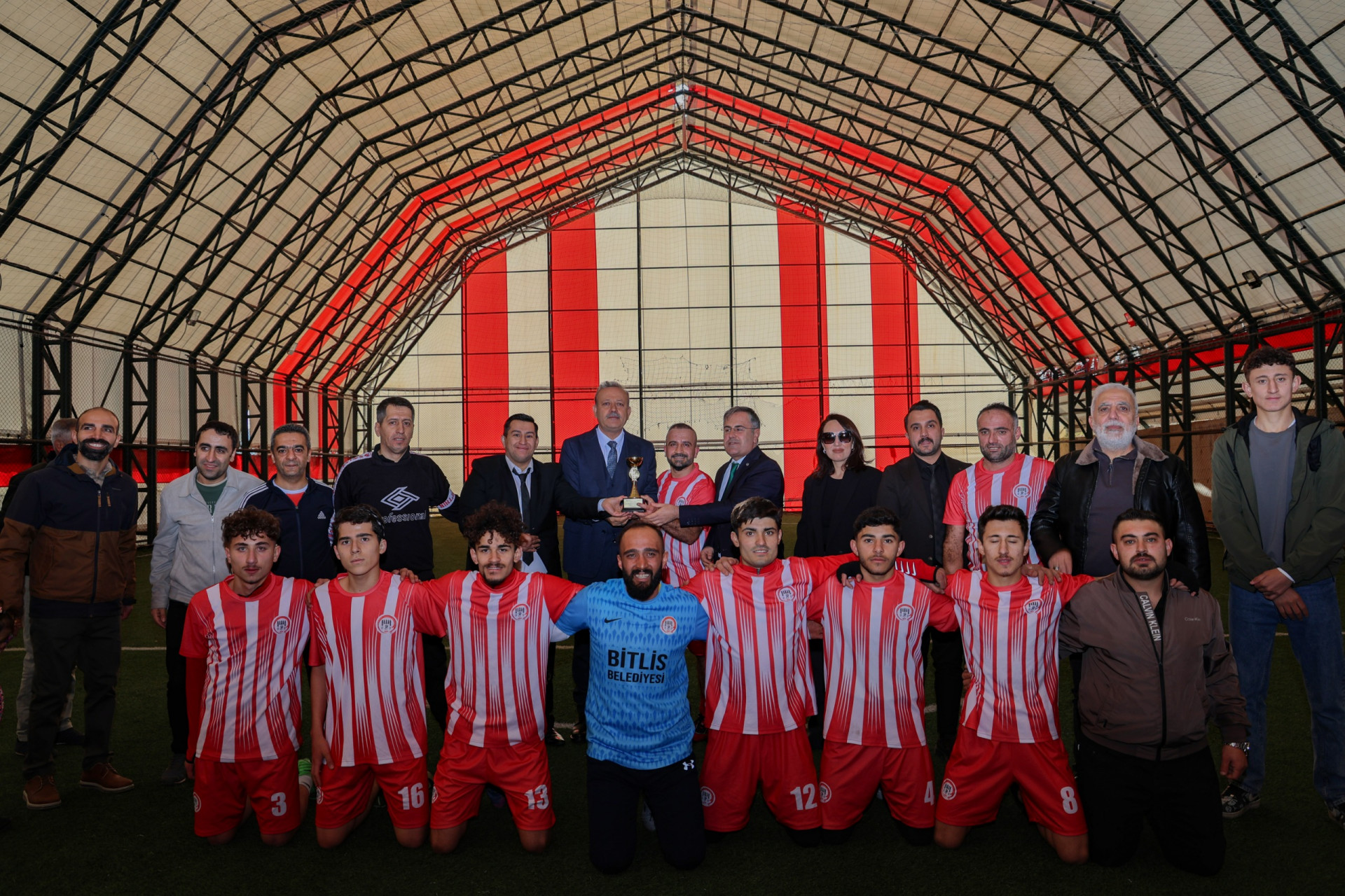 Bitlis Eren Üniversitesi Rektörü Sayın Prof. Dr. Necmettin Elmastaş ve İl Müdürümüz Vefa Akdoğan’ın katılımıyla gerçekleşen turnuvada, kazanan takımımıza kupa takdimi yapıldı. Bu anlamlı günde emeği geçen tüm paydaşlarımıza, sahada ter döken tüm katılımcılarımıza ve etkinliğe destek veren herkese teşekkür ederiz. Engelleri sporla, birlikle ve anlayışla aşmaya devam ediyoruz!