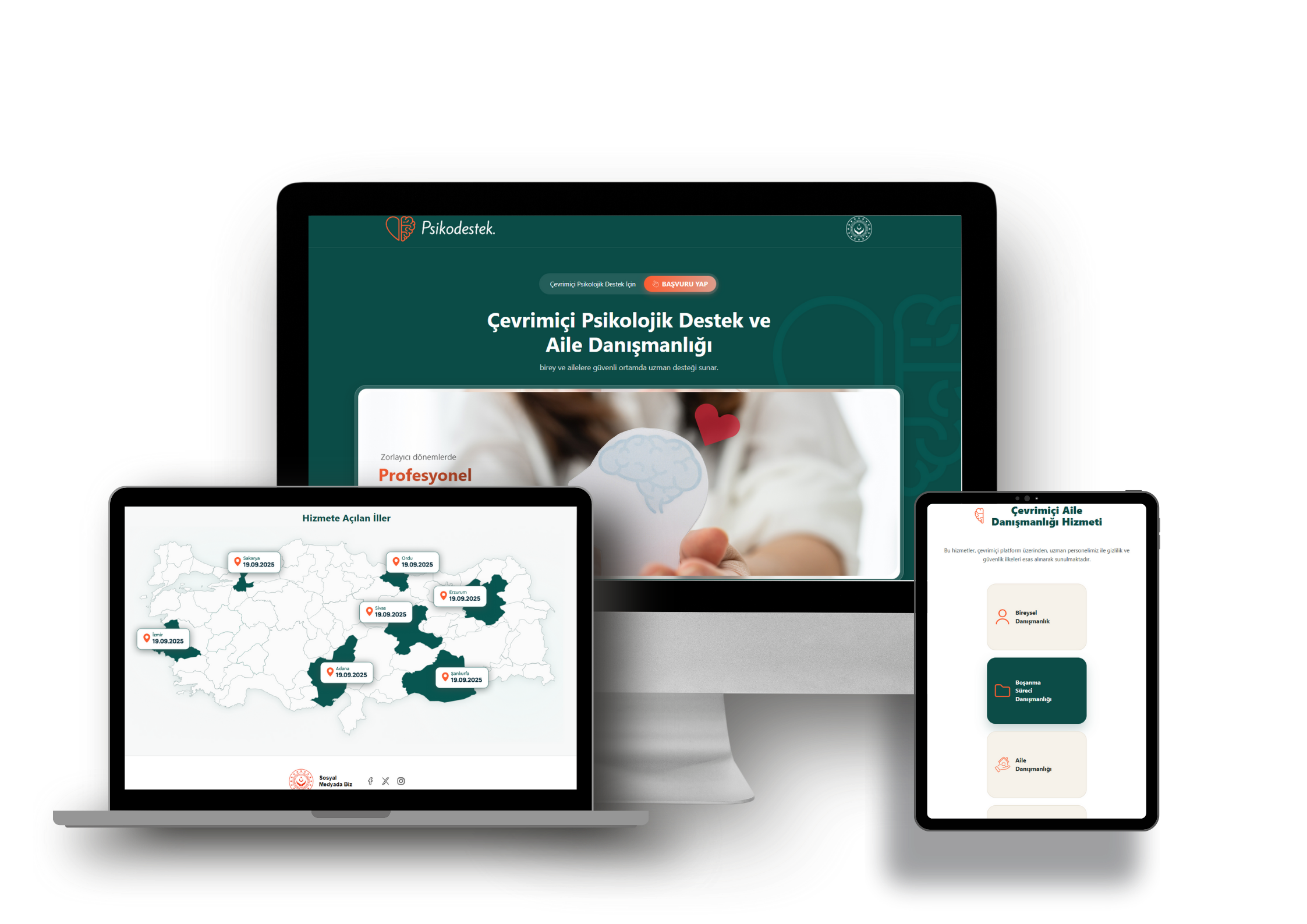 Aile danışmanlığı, bireysel danışmanlık, boşanma süreci danışmanlığı ve evlilik öncesi danışmanlık alanlarında çevrimiçi sunulacak hizmetten ilk aşamada Adana, Erzurum, İzmir, Ordu, Sivas, Sakarya ve Şanlıurfa illerinde ikamet eden vatandaşlarımız yararlanabilmektedir. Pilot çalışmanın ardından en kısa sürede ülke geneline yaygınlaştırılarak tüm vatandaşlarımızın istifade etmesi sağlanacaktır.