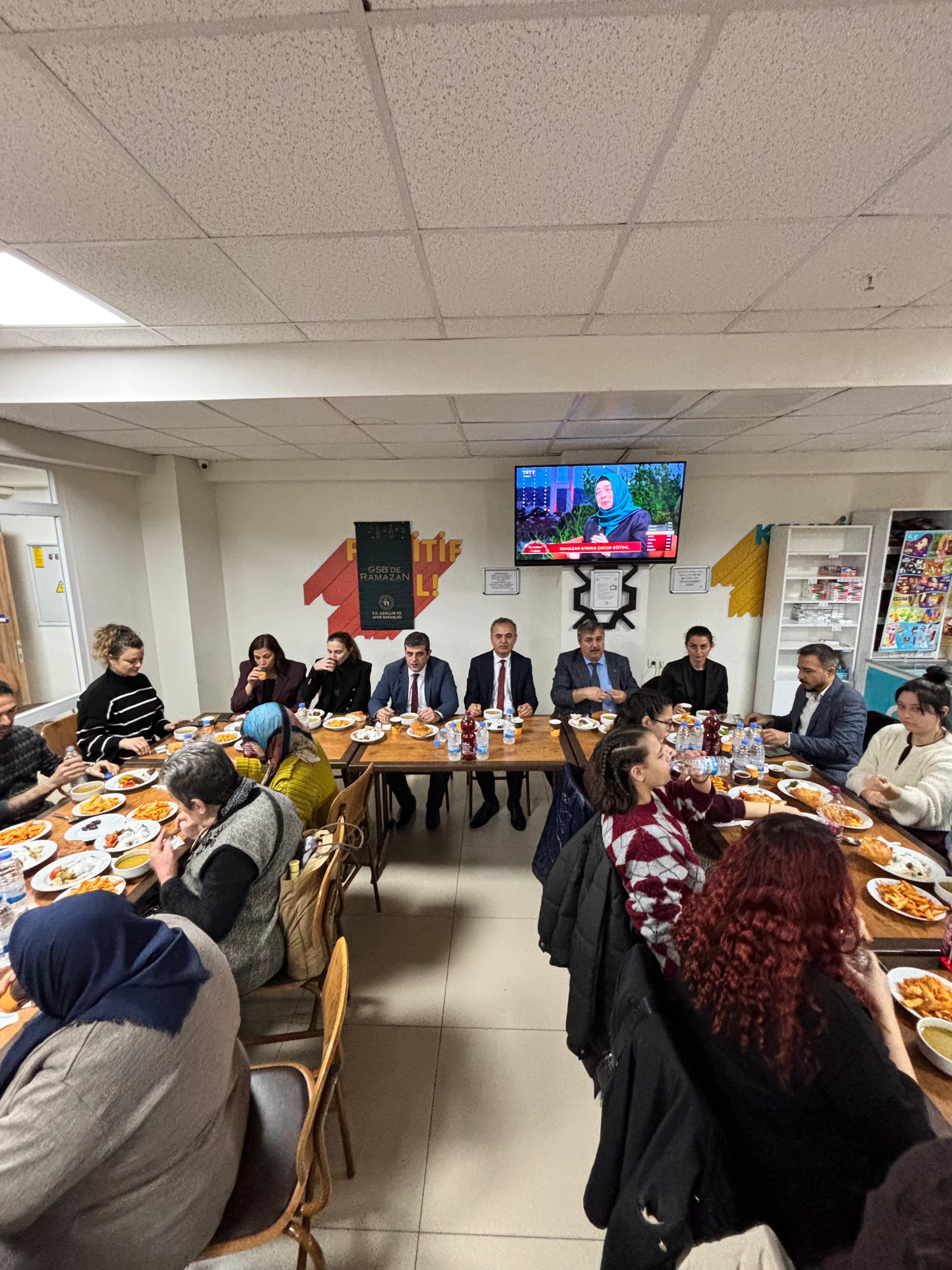 Düzenlenen iftar programımıza İl Müdürümüz Mustafa Çakır, Şube Müdürümüz Esra Duygu Akbaş ve Gençlik ve Spor İl Müdürümüz Orhan Kemerkaya, Yurt Hizmetleri müdürü Mustafa Özçelik katılım sağladı.