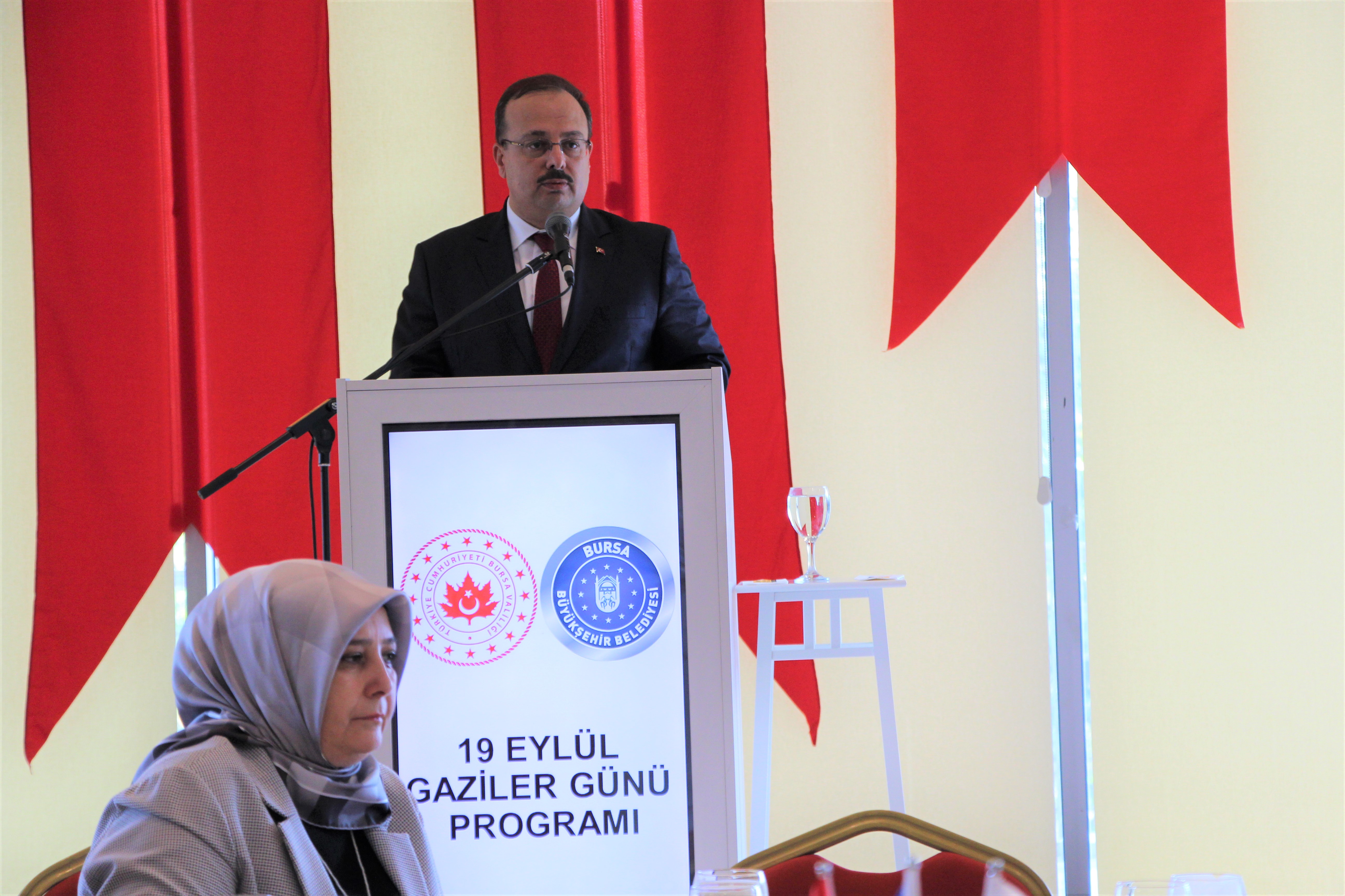 Gaziler günü etkinlikleri kapsamında Bursa Valisi Yakup CANBOLAT ve Eşi Ayşegül CANBOLAT hanımefendi Merinos AKKM Yıldırım Beyazıt Salonu’nda Şehit Yakınları ve Gazilerle yemekte bir araya geldiler.