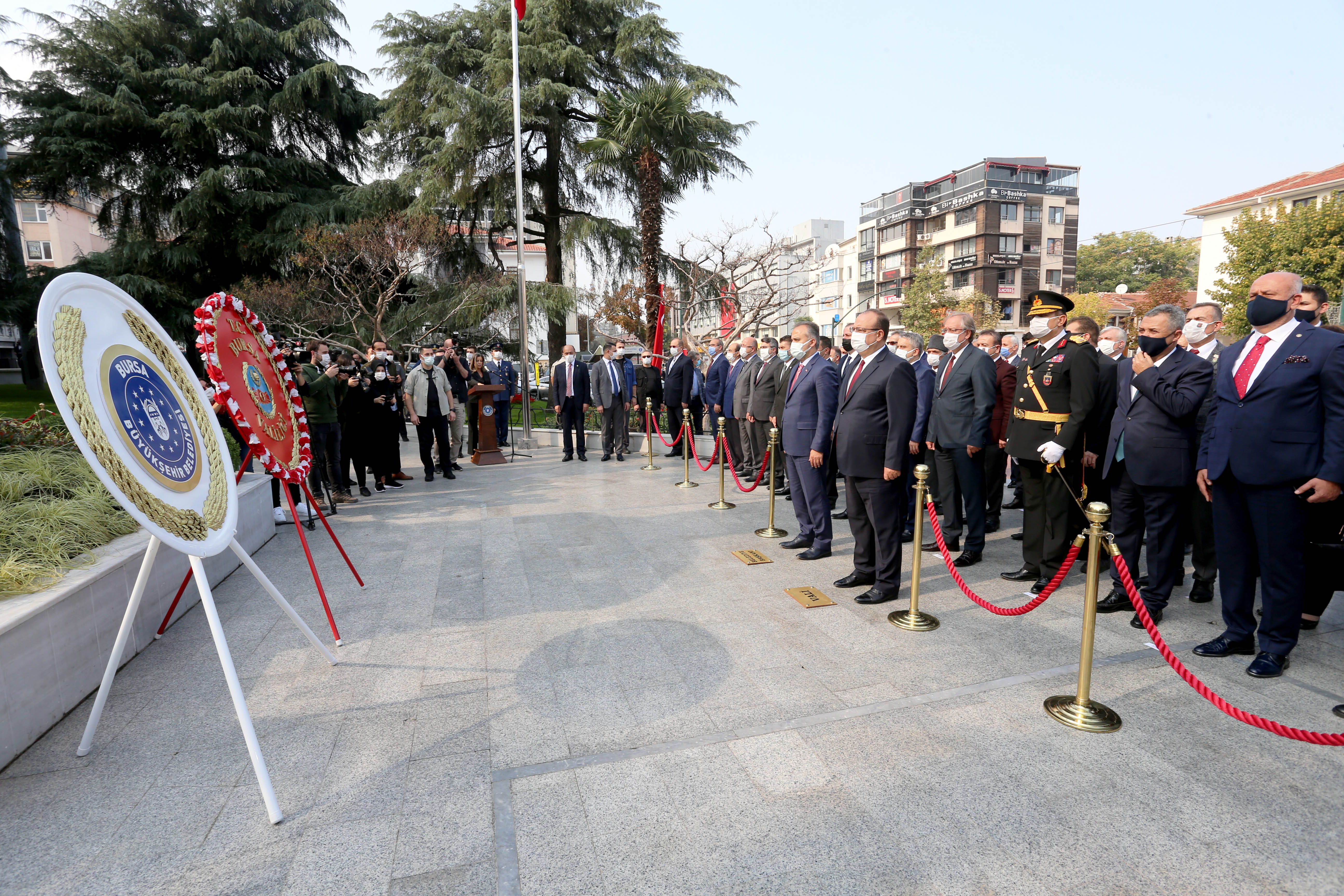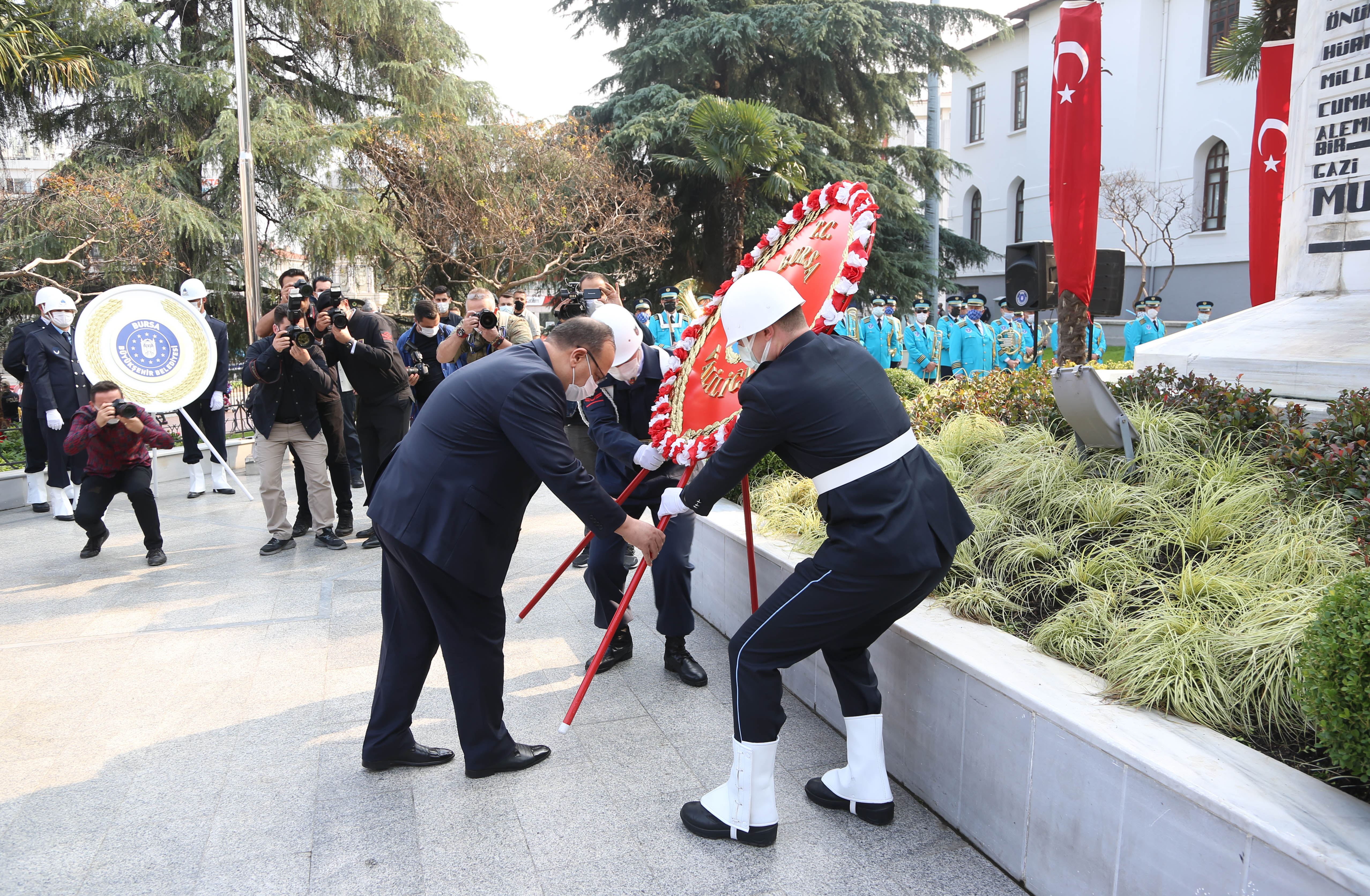 Atatürk Heykeli çelenk sunma törenine Bursa Valisi Yakup Canbolat, Bursa Büyükşehir Belediye Başkanı Alinur Aktaş, İl Müdürümüz Hasan Yılmaz ve Bursa Protokolü katıldı.