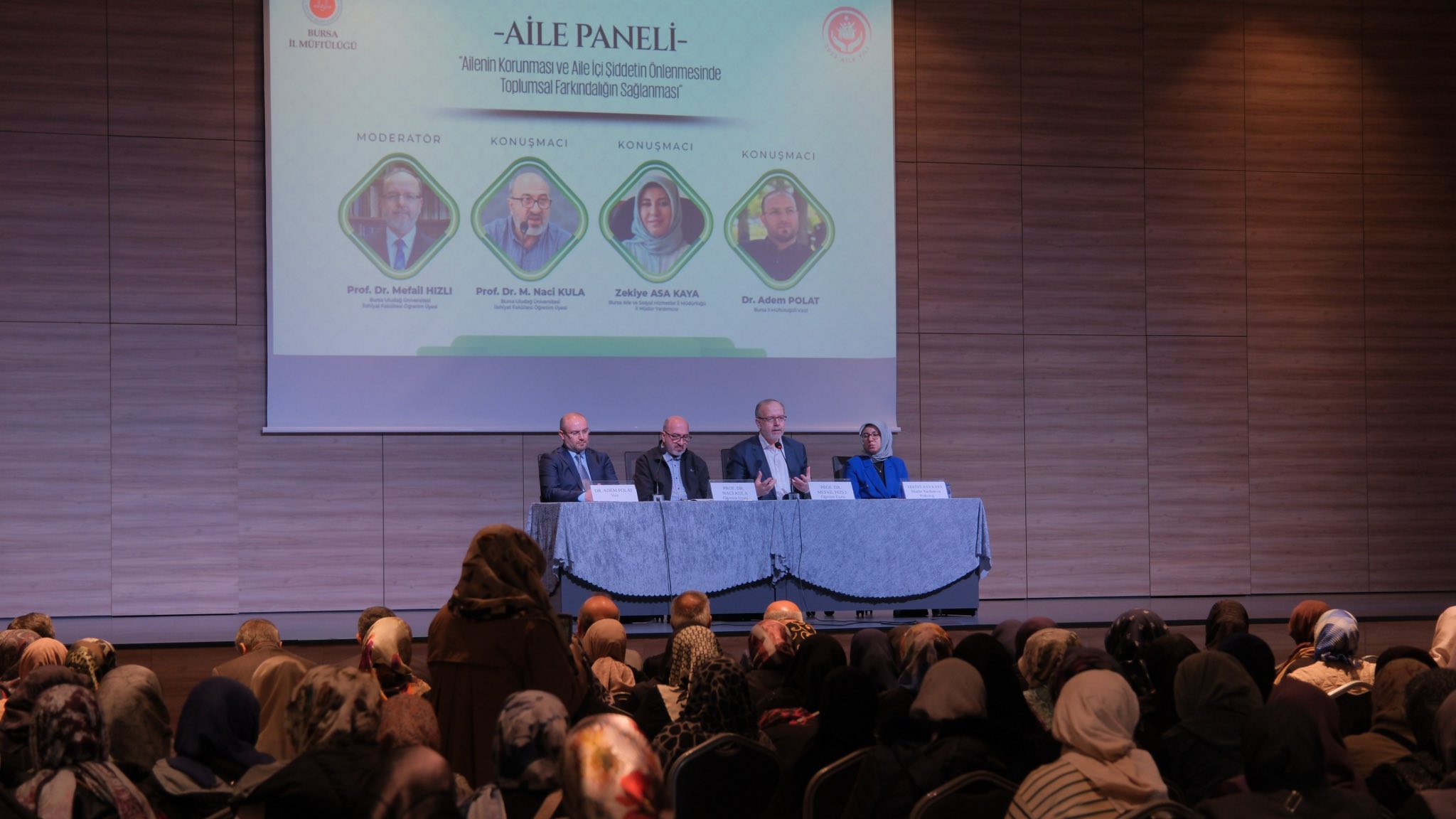 Bursa İl Müftülüğü ile Bursa Aile ve Dini Rehberlik Koordinatörlüğü’nün düzenlediği “Ailenin Korunması ve Aile İçi Şiddetin Önlenmesinde Toplumsal Farkındalığın Sağlanması” paneli, yoğun katılımla gerçekleşti.