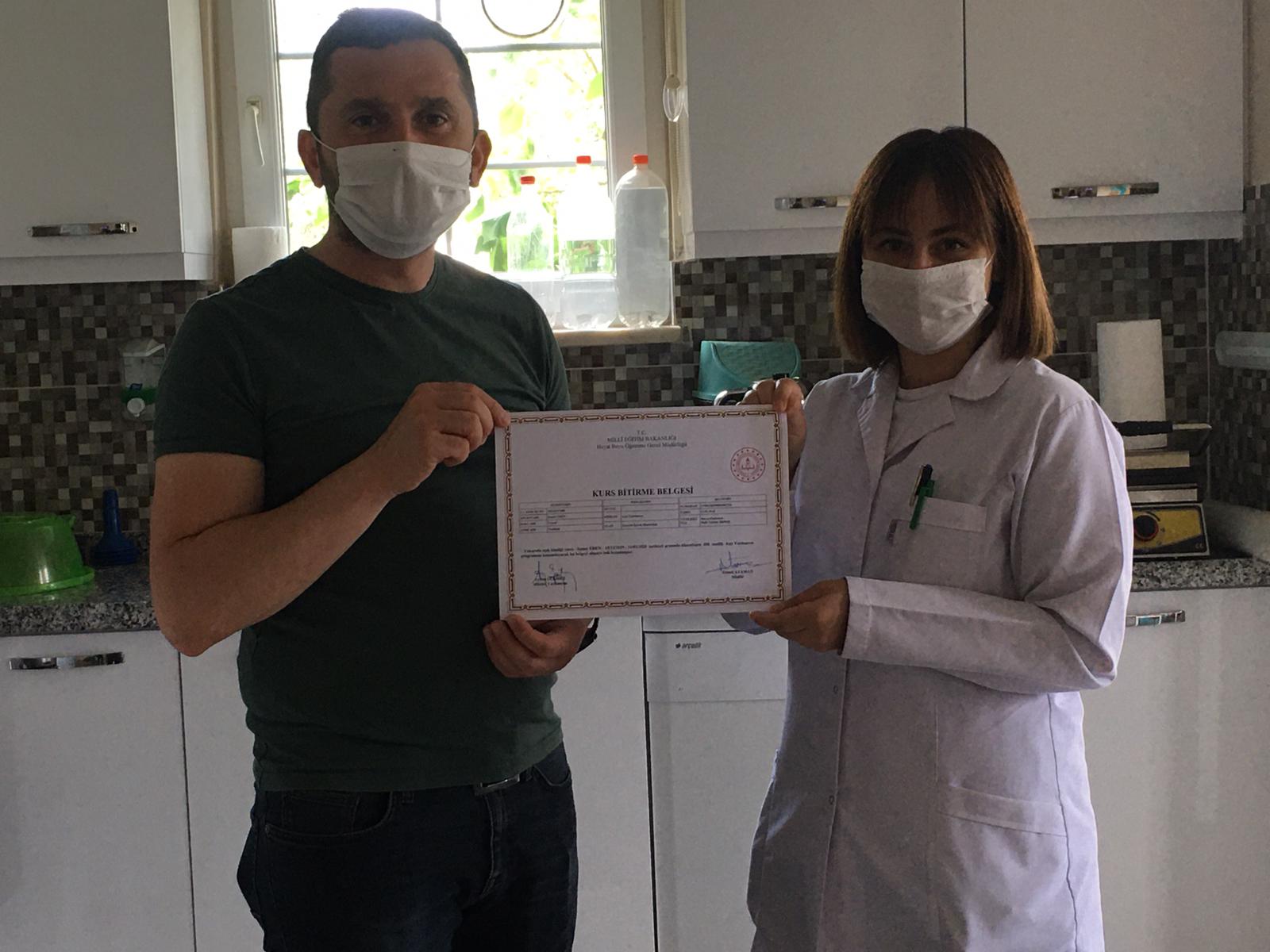Mudanya Halk Eğitim Müdürlüğünün 450 saatlik Aşçı Yardımcılığı Eğitimini tamamlayan ve belge almaya hak kazanan Dr Rüştü Burlu Çocuk Evleri Sitesi personellerimize eğitmenleri tarafından belgeleri verildi. Çocuklarımız da yapmış oldukları tatlı ile sertifika törenini güzelleştirdiler.