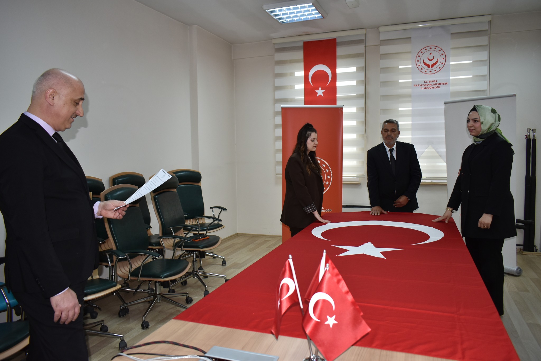 657 sayılı Devlet Memurları Kanunu kapsamında Türk Bayrağı üzerine el koyarak yemin eden aday memurlar, törenin ardından asaleten devlet memuru olarak görevlerine resmen başladı.