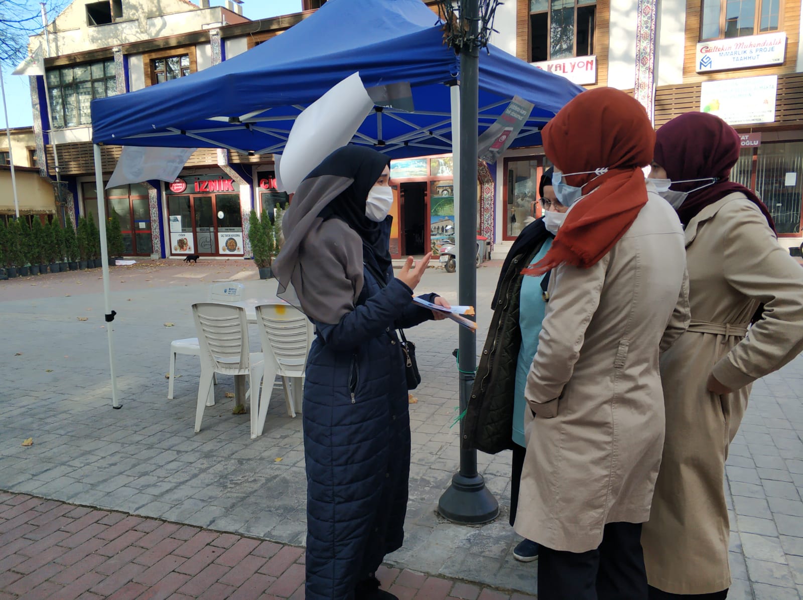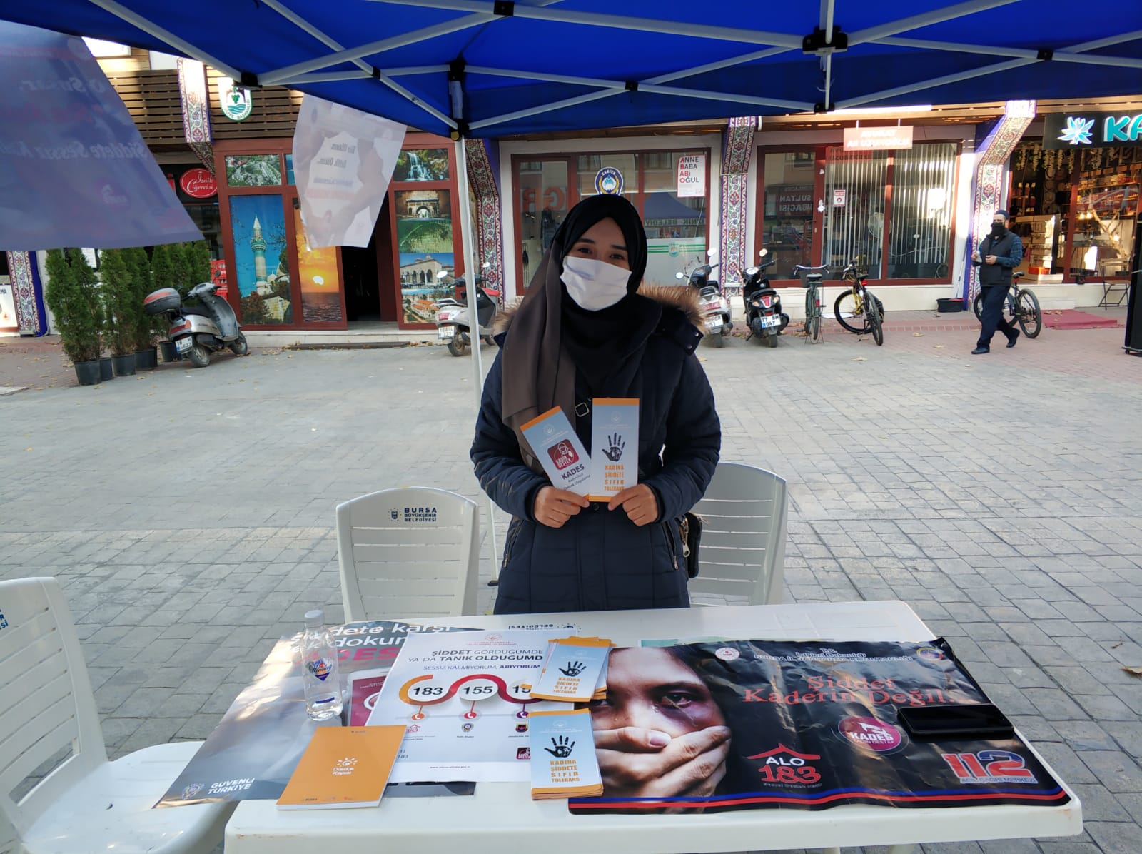 Yenişehir Sosyal Hizmet Merkezi Müdürlüğümüz, 25 Kasım Kadına Yönelik Şiddete Karşı Uluslararası Mücadele Günü kapsamında İznik İlçemizde Kadın Destek Uygulaması (KADES) ile Şiddet Önleme ve İzleme Merkezi (ŞÖNİM) tanıtım stantları kurarak bilgilendirme afişleri dağıttılar.