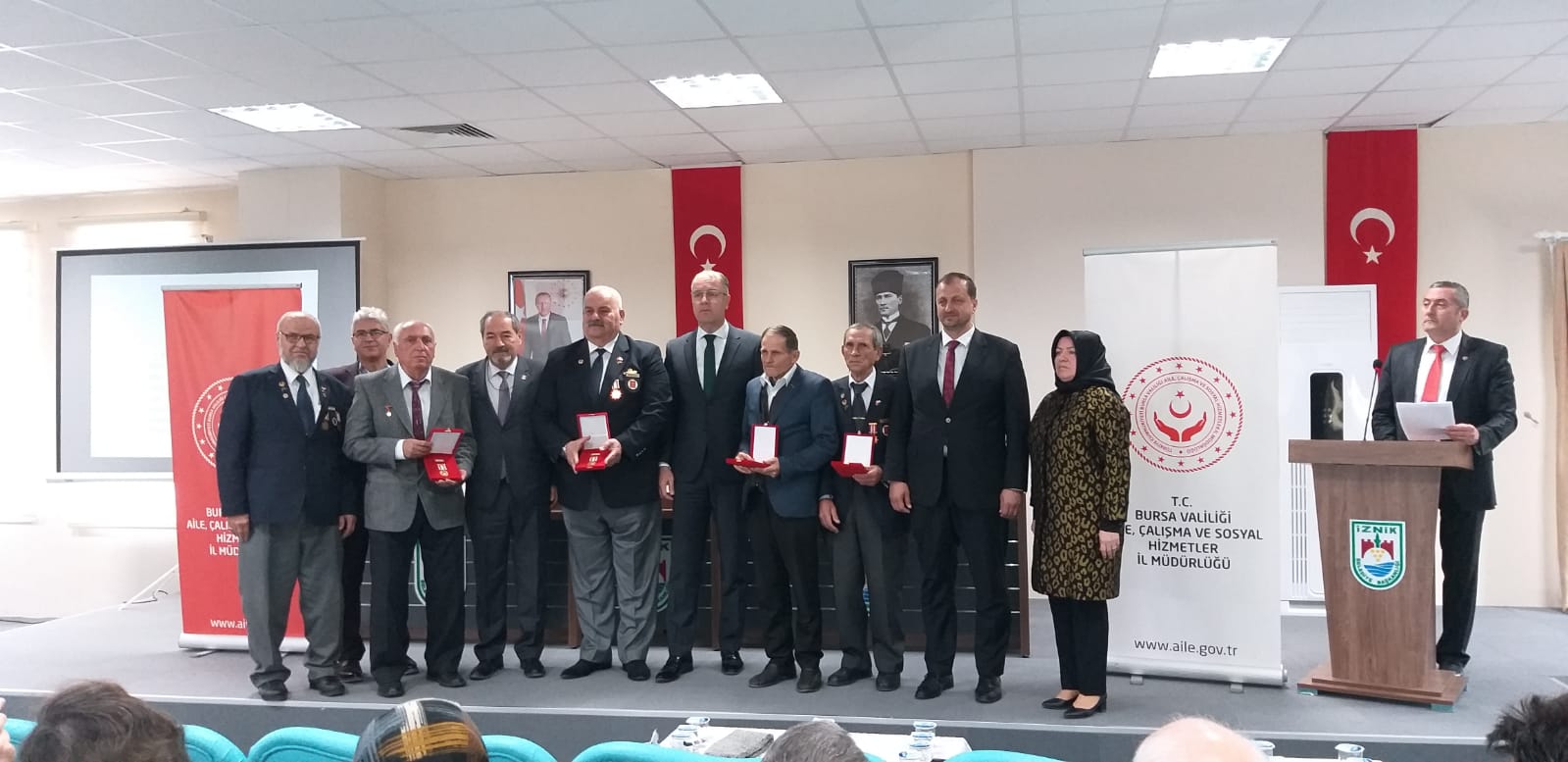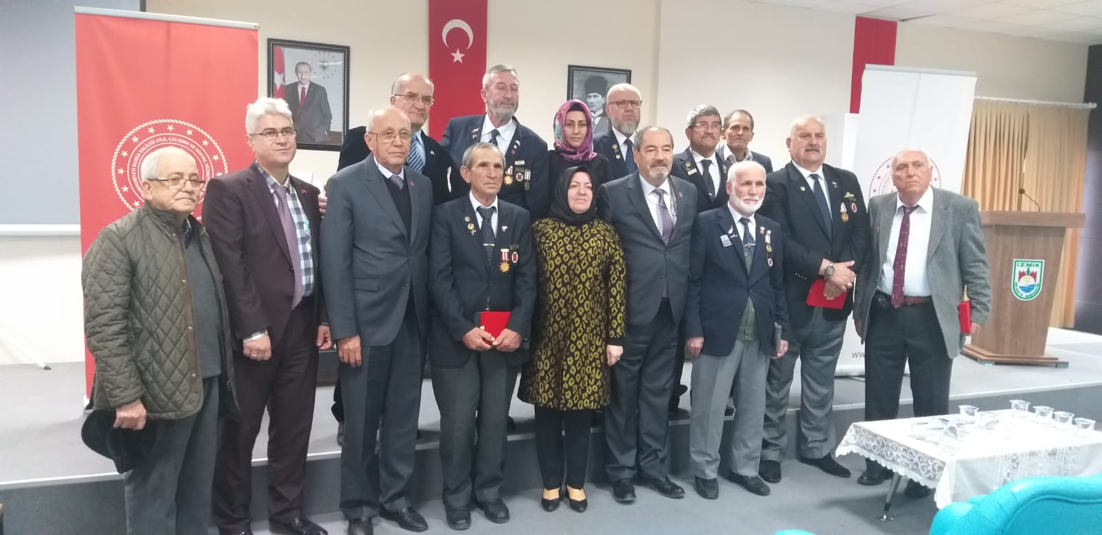 3 Aralık 2019 Salı günün ilk töreni İznik Kaymakamımız Sayın Bülent BAYRAKTAR uhdesinde İznik Belediye Başkanı Kağan Mehmet USTA, İl Müdür Yardımcımız Fikrîye AYDIN, Şube Müdürümüz Kemal KIRAYOĞLU, Bursa Muharip Gaziler Derneği Başkanı Muzaffer UYAR, gazilerimiz ve yakınlarının katılımlarıyla İznik Belediyesi Kültür Merkezi Toplantı Salonu tören gerçekleştirildi.
