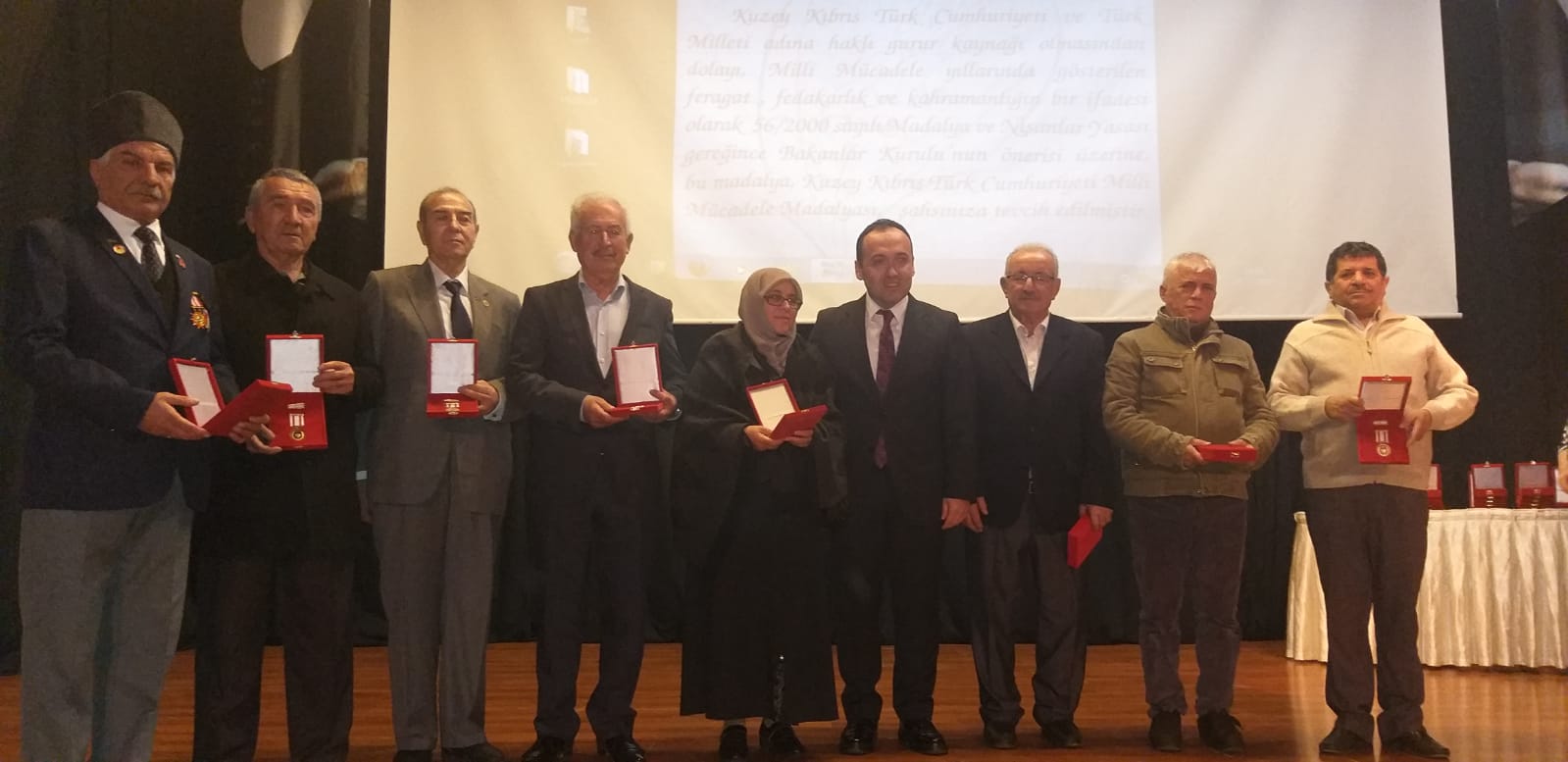 Törenlerde Kıbrıs gazilerimiz kendi fotoğraflarının bulunduğu slaytla karşılandı. Saygı Duruşu ve İstiklal Marşı’nın okunmasıyla başlayan programda Kuzey Kıbrıs Barış Harekâtının anlatıldığı video sunumunun ardından gazilerimize Kuzey Kıbrıs Türk Cumhuriyeti Milli Mücadele Madalyası ve Beratlarının tevcih edilmesiyle program son buldu.