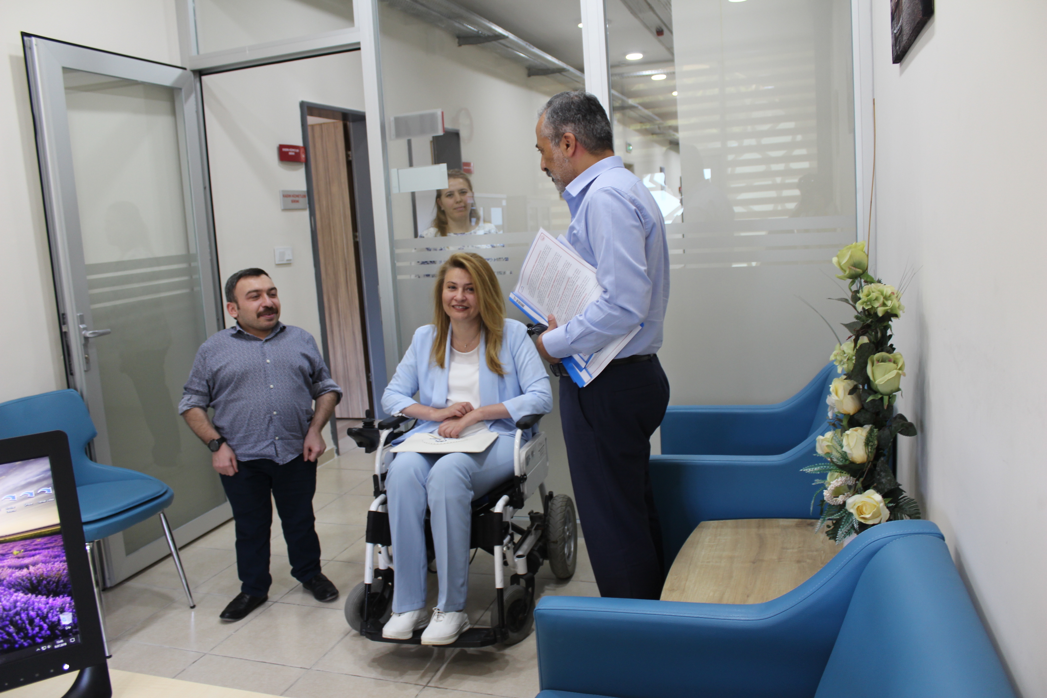 İl Müdürümüz Erkut ÖNEŞ ve İl Müdür Yardımcımız Halil CİVELEKOĞOLU, Sayın Bennur KARABURUN hanımefendiyi karşıladıktan sonra, kendileri ile müdürlüğümüz çalışmaları hakkındave ileriye dönük projelerimiz hakkındabir süre görüşme yaptılar.