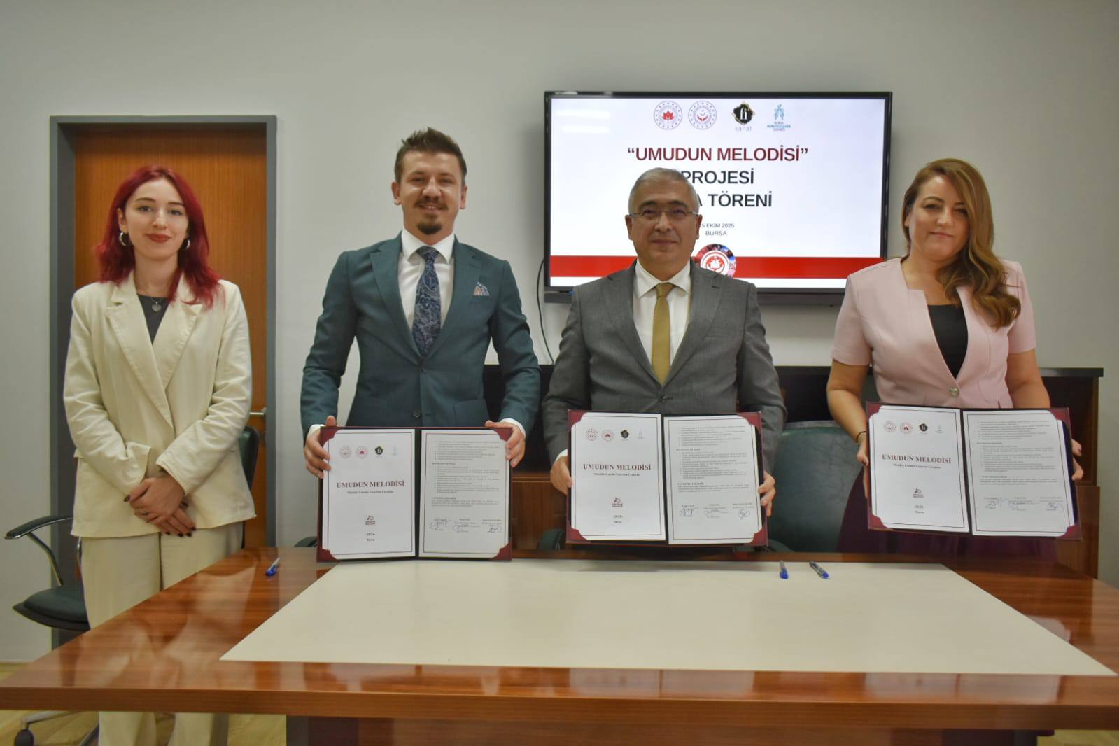 İl Müdürlüğümüz, Fi Sanat ve Bursa Koruyucu Aile Derneği iş birliğiyle, 6-12 yaş aralığındaki çocuklarımızn müzik aracılığıyla özgüven, empati, sosyal uyum, iletişim, takım çalışması ve öz disiplin becerilerinin geliştirilmesini amaçlayan “Umudun Melodisi – Müzikle Umudu Yeşerten Çocuklar” projesinin imza töreni düzenlendi.