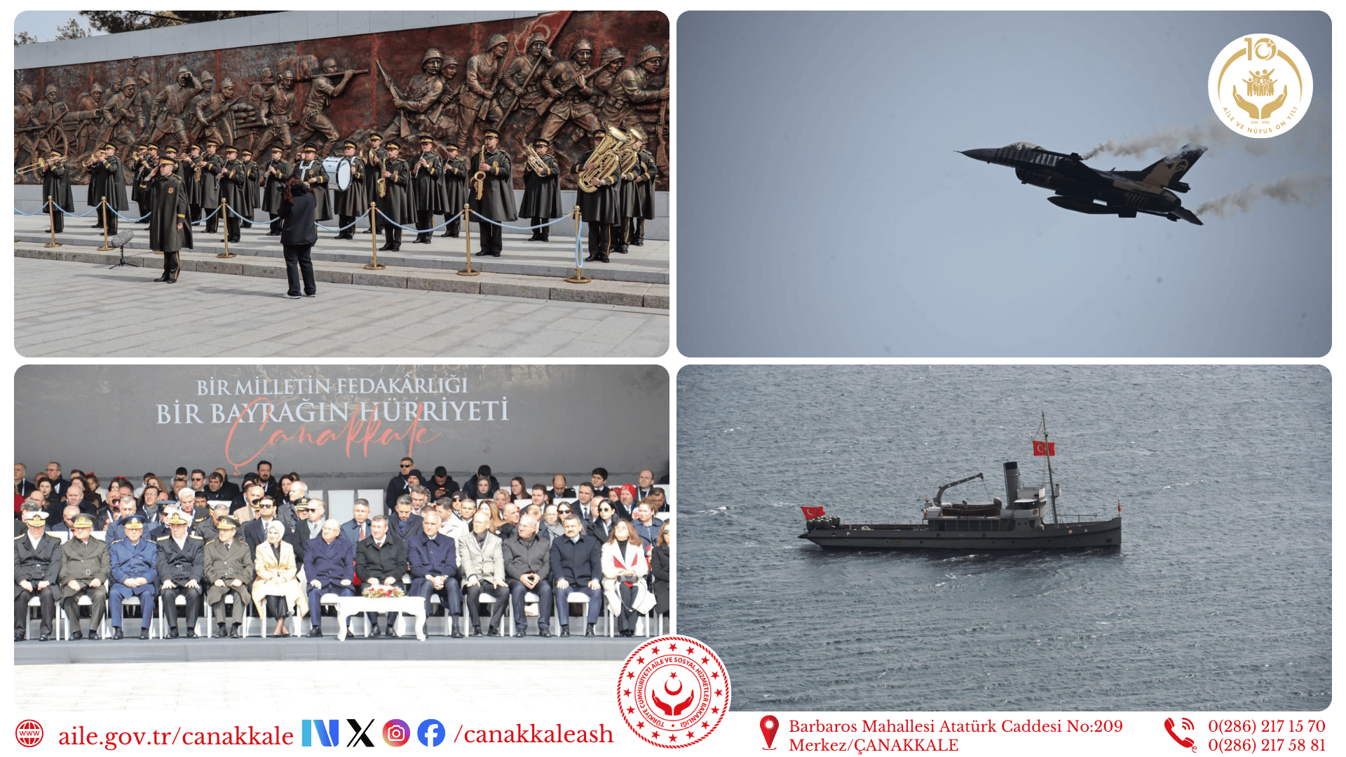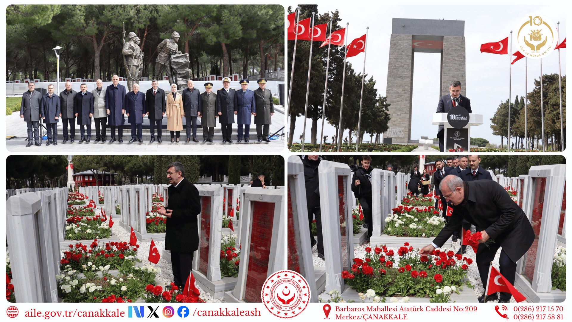 Çanakkale Zaferi’nin 111. yıl dönümünde, Şehitler Abidesi’nde düzenlenen törende, vatan uğruna canlarını feda eden aziz şehitlerimiz rahmet, minnet ve saygıyla anıldı. Törene; Cumhurbaşkanı Yardımcısı Sayın Cevdet YILMAZ, Aile ve Sosyal Hizmetler Bakanımız Sayın Mahinur ÖZDEMİR GÖKTAŞ, Milli Savunma Bakanı Sayın Yaşar GÜLER, Kültür ve Turizm Bakanı Sayın Mehmet Nuri ERSOY, KKTC Çalışma ve Sosyal Güvenlik Bakanı Oğuzhan HASİBOĞLU, Valimiz Sayın Doç. Dr. Ömer TORAMAN, Çanakkale Savaşları Tarihi Alan Başkanı İsmail KAŞDEMİR, İl Müdürümüz Ali ÖMÜT protokol üyeleri ve davetliler katıldı.