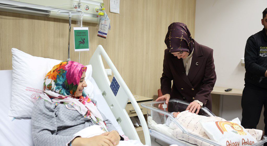 Bakan Göktaş ve Bakan Yumaklı ilk olarak üçüncü bebekleri dünyaya gelen Meryem-Yasin çiftinin bebekleri Asel’i ziyaret ederek, sağlıkla büyümesi temennisinde bulundu.
