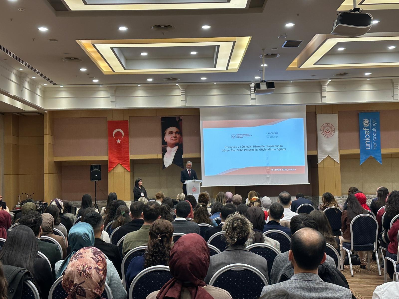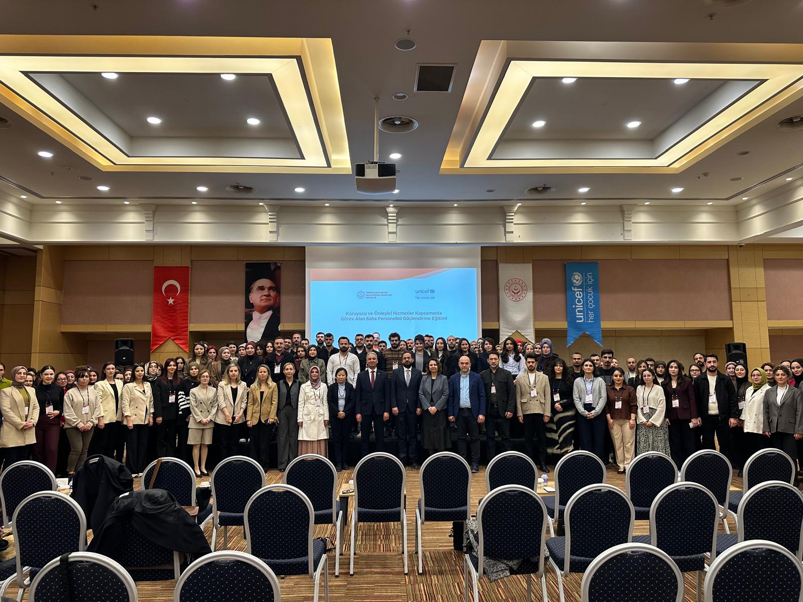 Bakanlığımız ile UNICEF iş birliğiyle yürütülen çalışmalar kapsamında, çocuk koruma hizmetlerinin sahadaki etkinliğini artırmayı amaçlayan “Koruyucu ve Önleyici Hizmetler Kapsamında Görev Alan Saha Personelini Güçlendirme Eğitimi” başladı. Dört gün sürecek eğitim programının açılışı, Genel Müdürümüz Sn. Hasan Basri Alagöz’ün katılımıyla gerçekleştirildi.