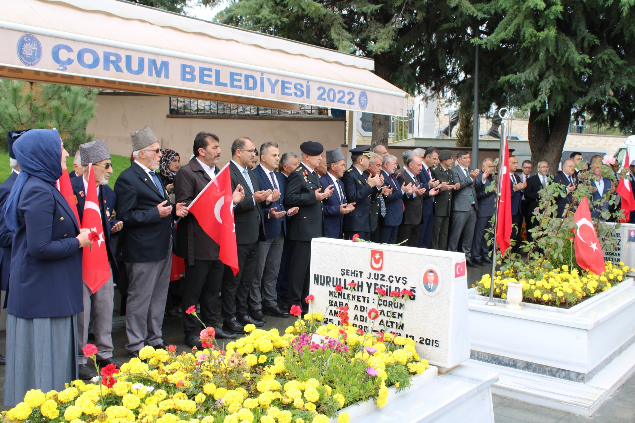 Valimiz Sayın Ali ÇALGAN, protokol üyeleri ile birlikte İl Müdürümüz Sahit AYDIN, kuruluş müdürlerimiz, kurum personellerimiz Çorum Şehitliğini ziyaret ettik.