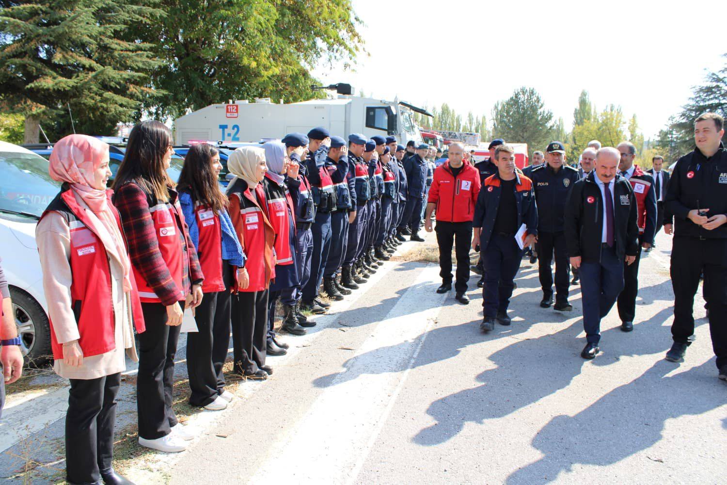 Tatbikat; Valimiz Sayın Ali ÇALGAN, ilgili kurum yöneticileri, İl Müdürümüz Sahit AYDIN ve Şube Müdürümüz Şemsi DAYI’nın katılımlarıyla gerçekleştirildi.