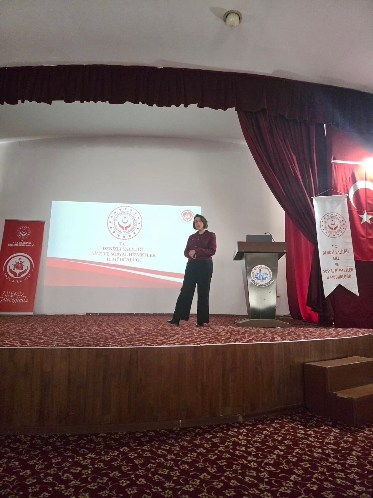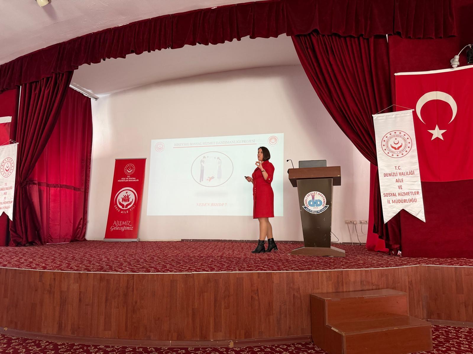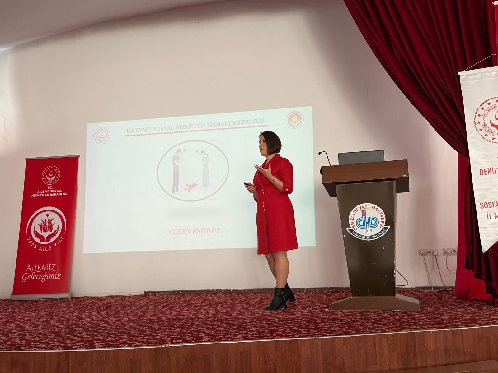 Bakanlığımız Engelli ve Yaşlı Hizmetleri Genel Müdürlüğünce hayata geçirilen II. Ulusal Otizm Eylem Planı (2023-2030)’nın "Etkili Sosyal Hizmet Modelleriyle Bireyi ve Aileyi Güçlendirmek" temasının altında yer alan faaliyetlerinden olan "Otizm Spektrum Bozukluğu Tanısı Alan Bireylerin Aileleri İçin Bireysel Sosyal Hizmet Danışmanlığı" Projesi (BSHDP) 24.12.2025 ve 25.12.2025 tarihlerinde Engelli Hizmetleri Biriminde görevli Personellerimiz tarafından Denzili Devlet Hastanesinde görevli Çocuk Psikiyatri , Çocuk Nöroloji ,Çocuk Sağlığı ve Hastalıkları Bölümü Hekimlerine ve Sosyal Çalışmacı personele Denizli Devlet Hastanesi Konferans salonunda eğitim gerçekleştirilmiştir.