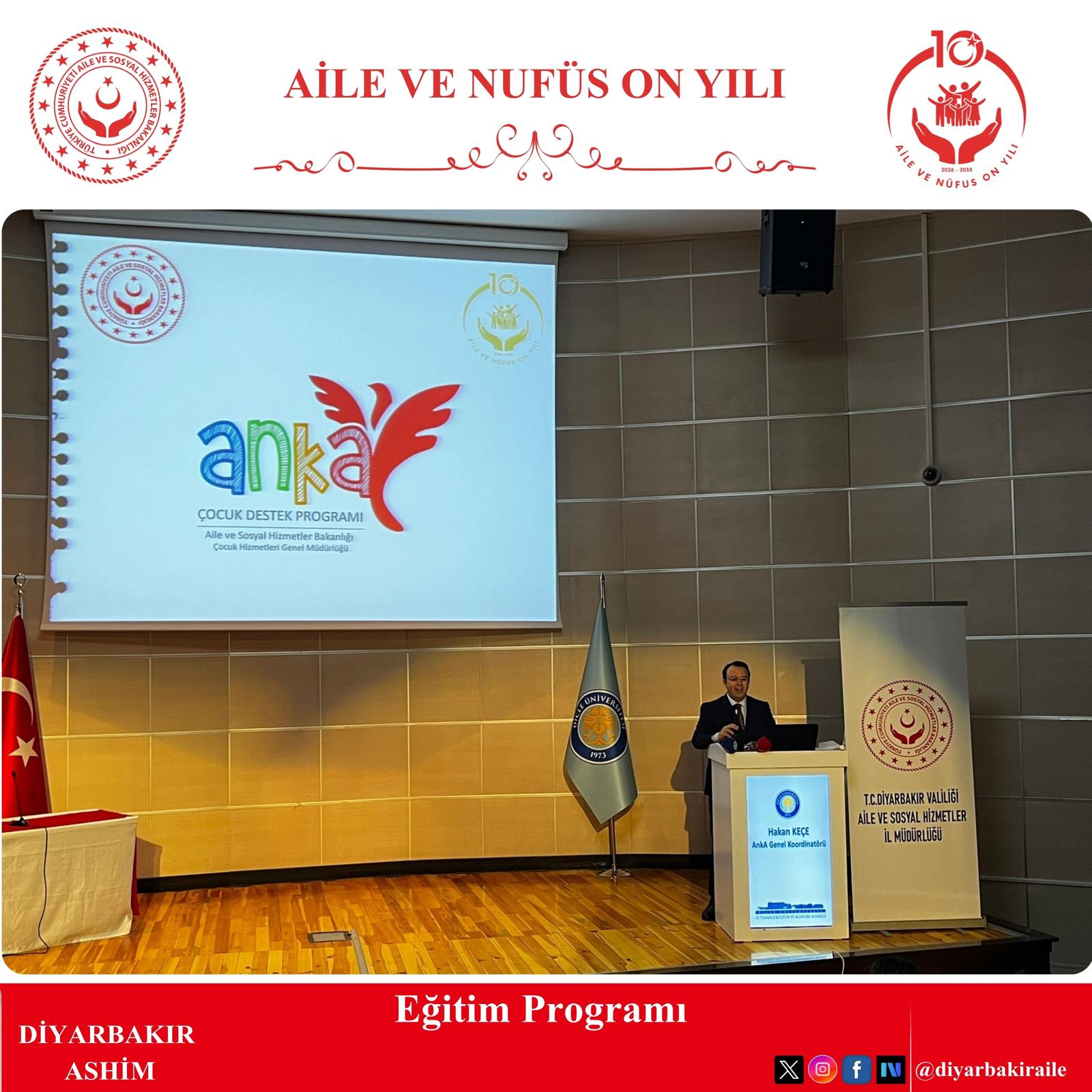 Dicle Üniversitesi 15 Temmuz Kültür ve Kongre Merkezi Orhan Asena Konferans Salonu’nda düzenlenen ANKA Psiko-Sosyal Çocuk Destek Programı eğitimi, İl Müdürümüz Sayın Aydın Polat’ın açılış konuşmalarıyla başlamıştır.