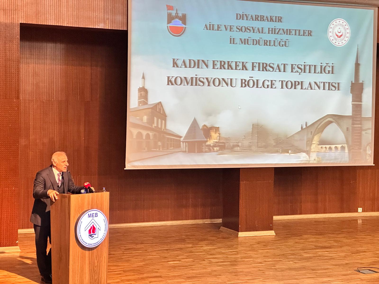 Diyarbakır Aile ve Sosyal Hizmetler İl Müdürlüğümüz koordinasyonunda, Valimiz Sayın Murat Zorluoğlu’nun ev sahipliğinde, TBMM Kadın Erkek Fırsat Eşitliği Komisyonu Başkanı Sayın Çiğdem Erdoğan ve Komisyon üyelerinin katılımıyla “Kadın Erkek Fırsat Eşitliği Bölge Çalışma Toplantısı” gerçekleştirildi.