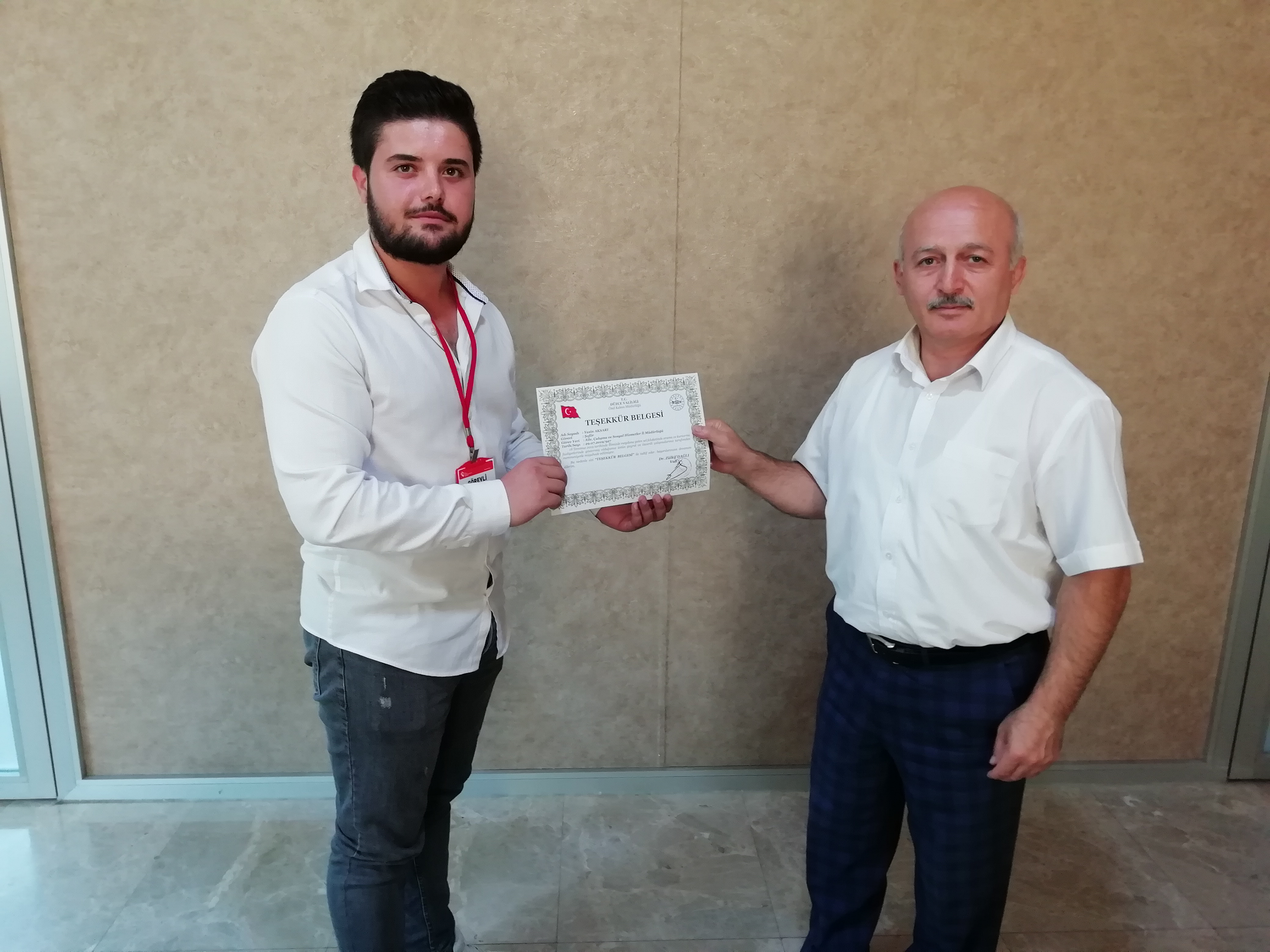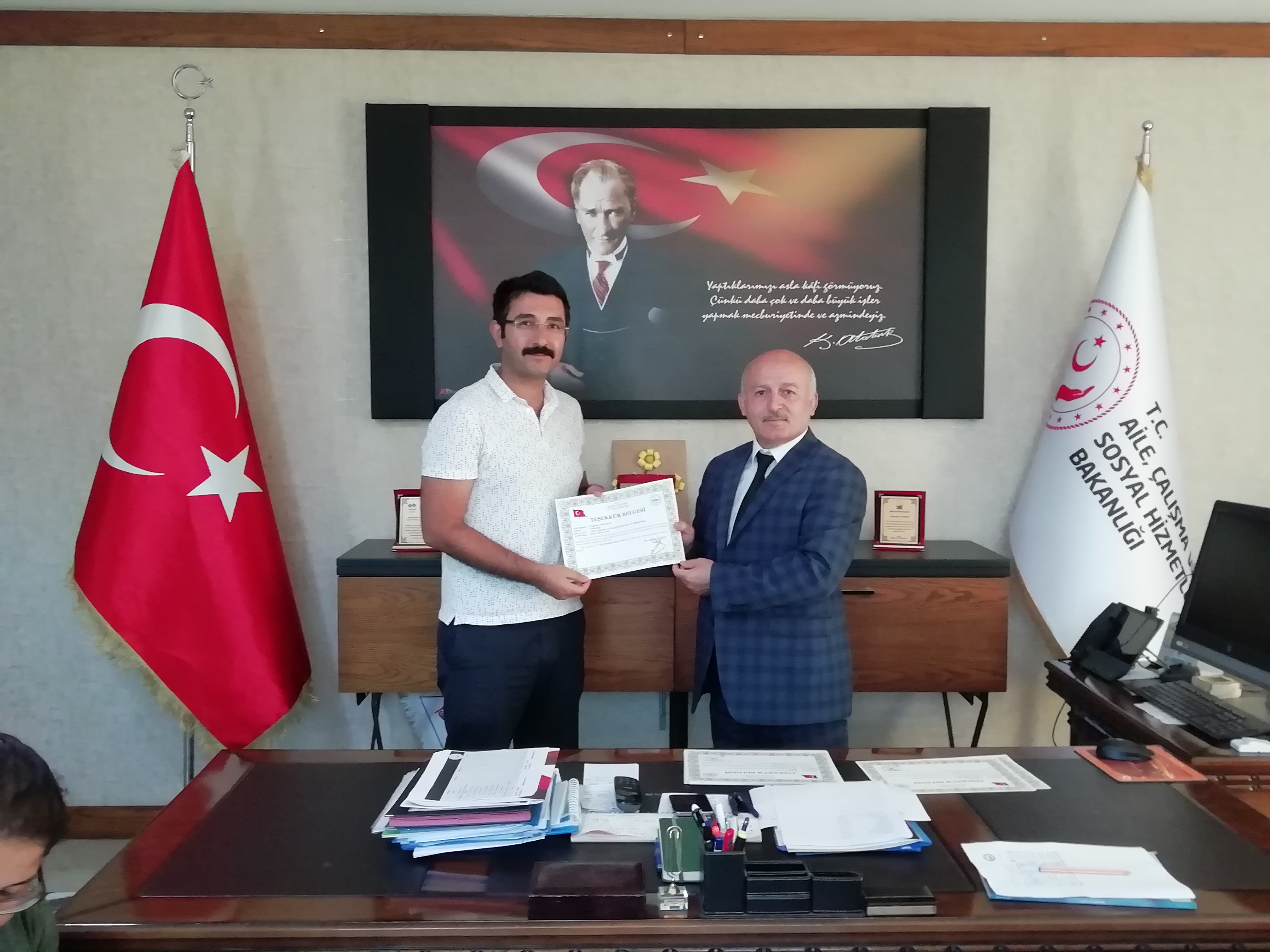 Aile, Çalışma ve Sosyal Hizmetler İl Müdürü Zeki YILDIRIM, Düzce Valisi Sayın Dr. Zülkif DAĞLI hazırlandıtırıldı Teşekkür Belgelerini Takdim Etti.