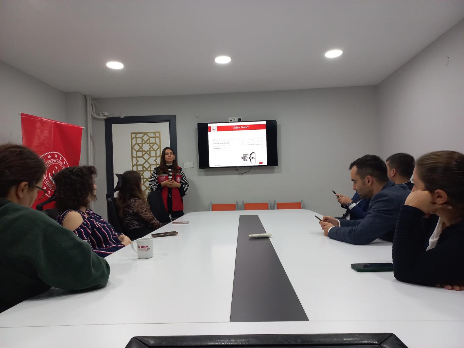 Edirne Aile ve Sosyal Hizmetler İl Müdürlüğüne bağlı Şiddet Önleme ve İzleme Merkezi Müdürlüğünce Edirne İl Nüfus ve Vatandaşlık Müdürlüğü personeline Kadına Yönelik Şiddetle Mücadele eğitimi verildi.