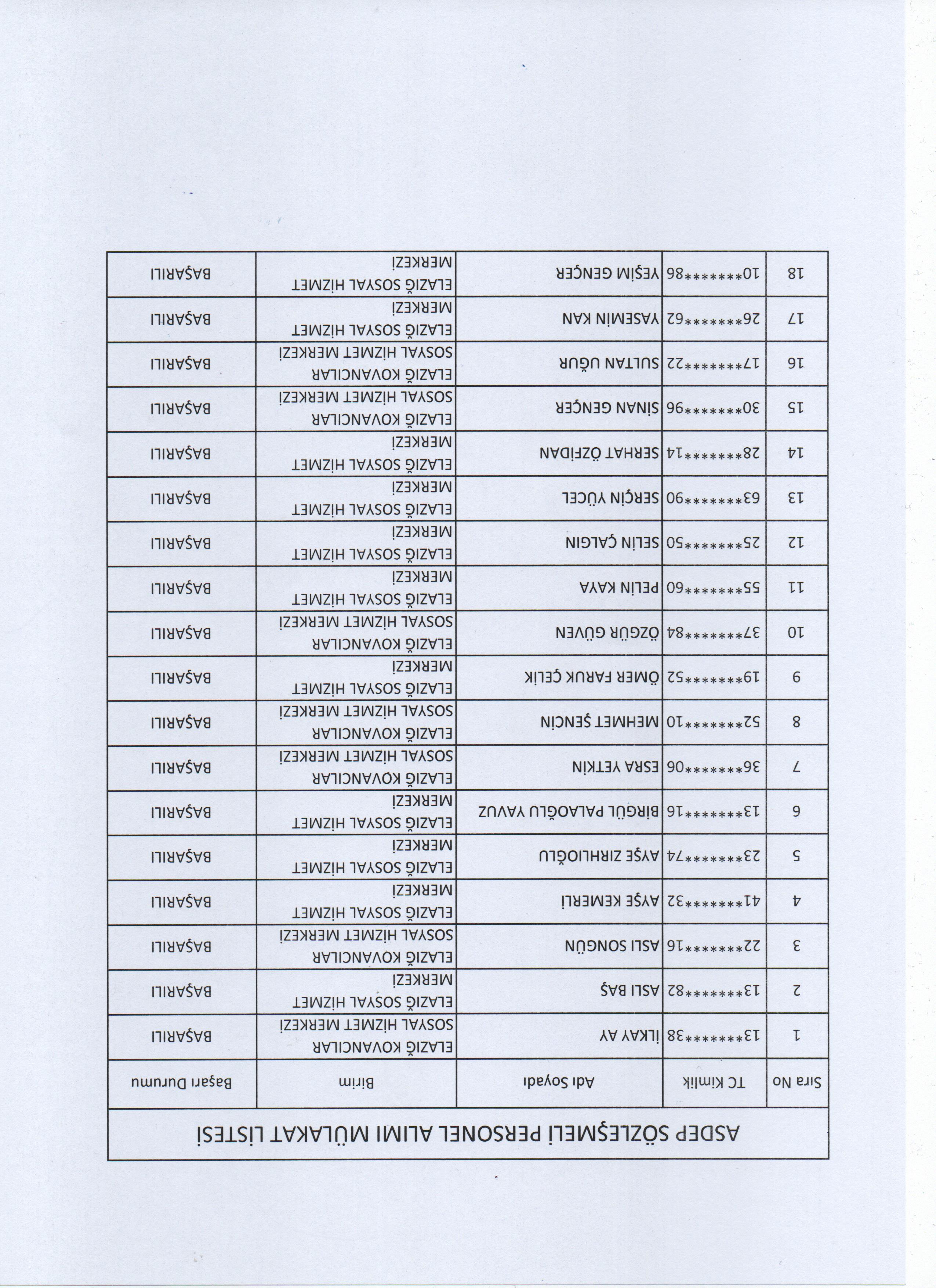 Aile Sosyal Destek Programı kapsamında Sürekli İşçi olarak görev yapıp sözleşmeli pozisyonlara atanacak personelin Sözlü Sınav Sonuçları