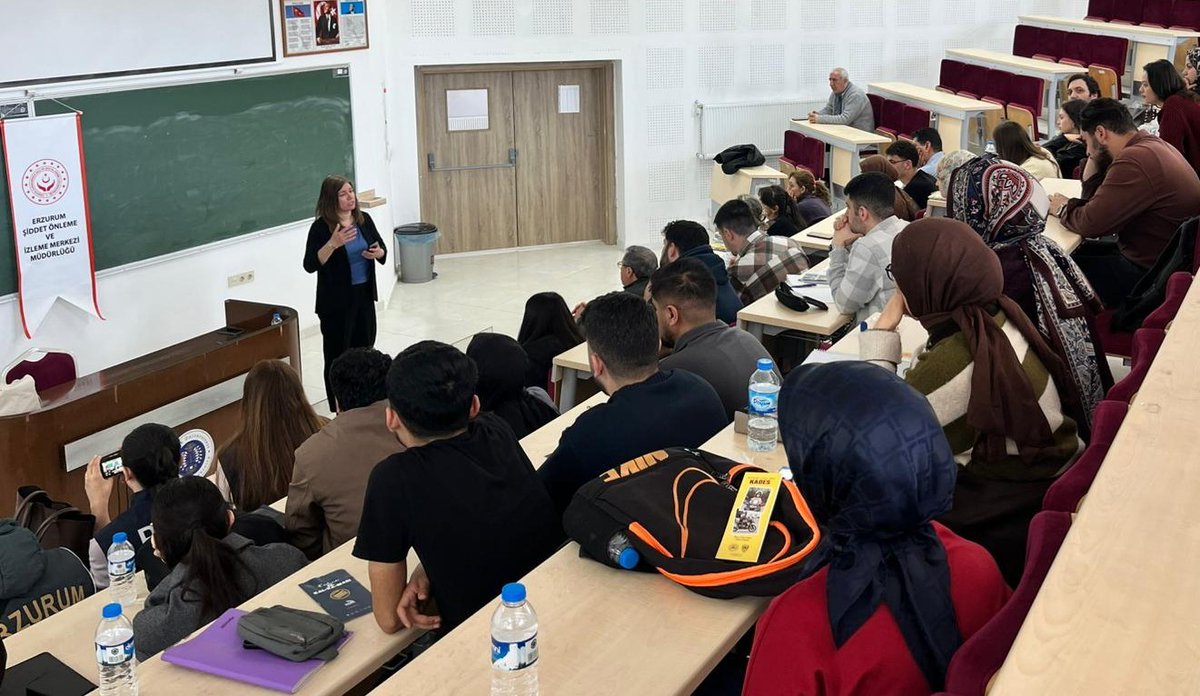 Erzurum’da gerçekleştirilen eğitim programları kapsamında, Atatürk Üniversitesi’nin farklı bölümlerinde öğrenim gören öğrenciler ile Oltu Meslek Yüksekokulu Sosyal Hizmet Bölümü öğrencilerine yönelik bilgilendirme faaliyetleri yapıldı. Eğitimlerde kadına yönelik şiddetin türleri, etkileri ve mücadele yöntemleri ele alınmış; katılımcıların soruları yanıtlanarak interaktif bir ortam sağlanmıştır. Program boyunca gençlerin yoğun ilgisi gözlemlenmiş, toplumsal farkındalığın artırılmasına yönelik önemli katkı sağlanmıştır.