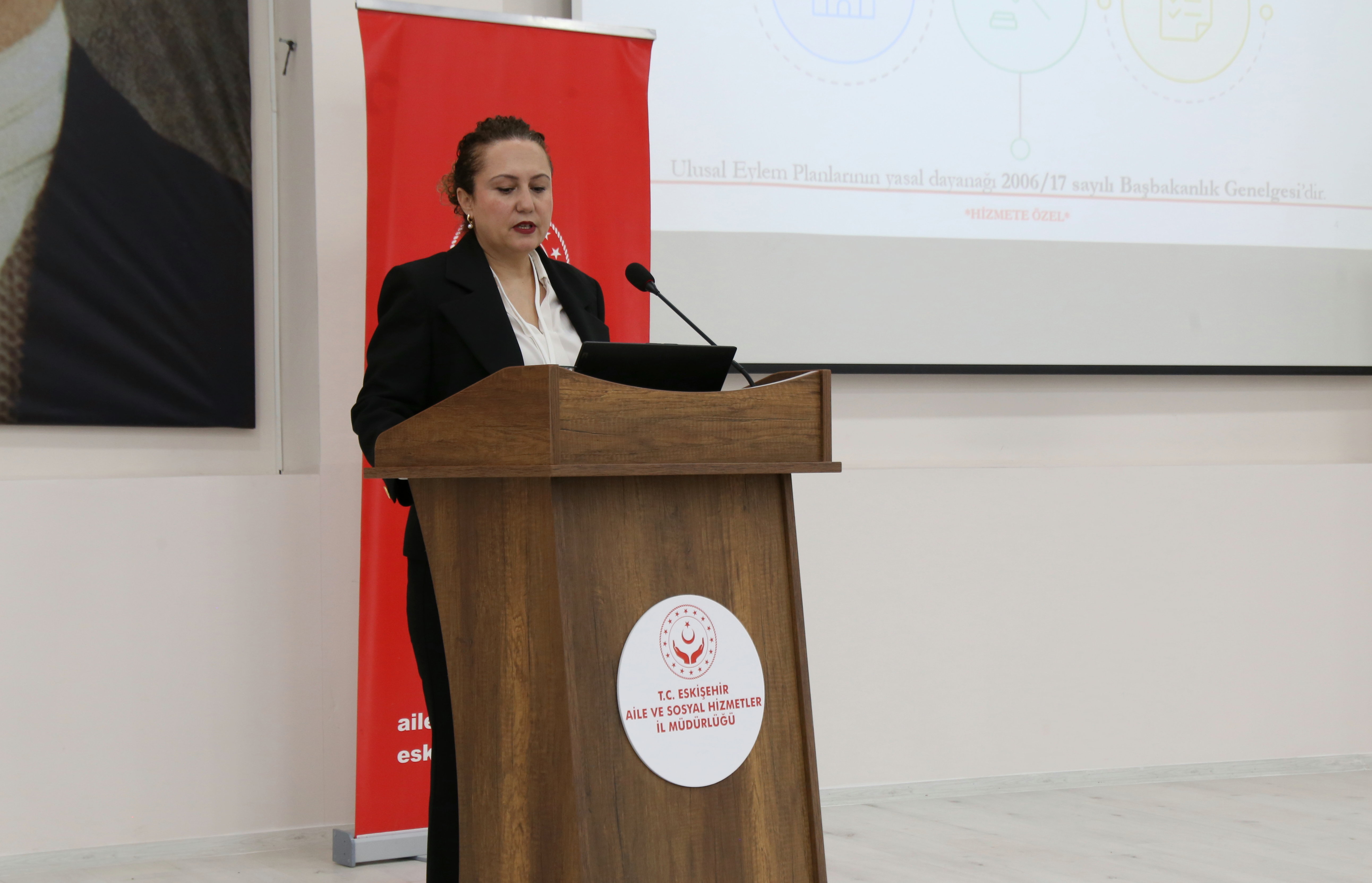 İl Müdür Yardımcımız Dilek Çamursoy çalıştay kapsamında hazırlanacak olan il eylem planının hazırlanmasıyla ilgili detaylı bir sunum gerçekleştirdi.