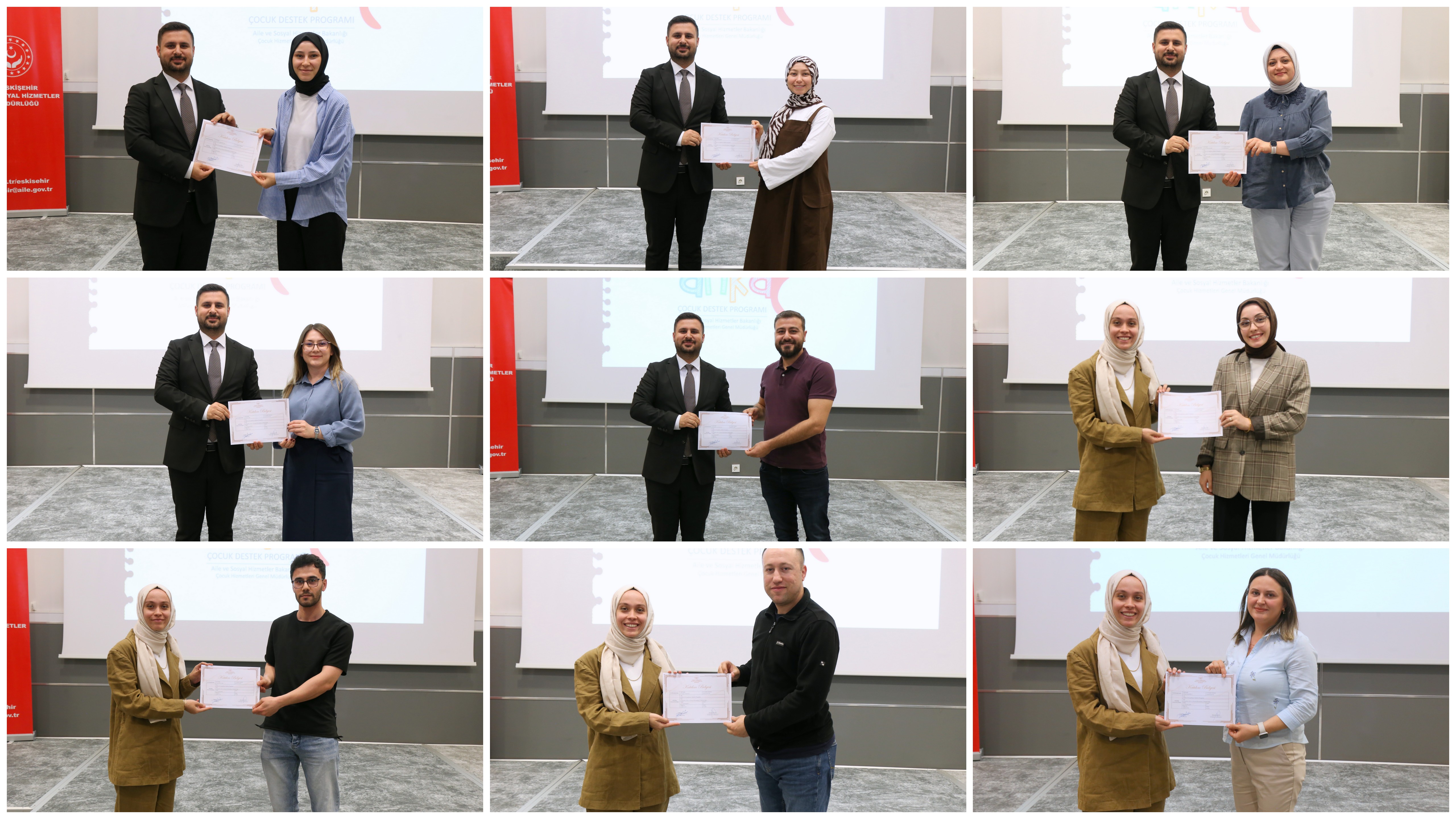 Kapanış konuşmalarının ardından, eğitim programını başarıyla tamamlayan uzman personele ve eğitimcilere katılım belgeleri takdim edildi. Program, günün anısına çekilen hatıra fotoğrafları ile sona erdi.